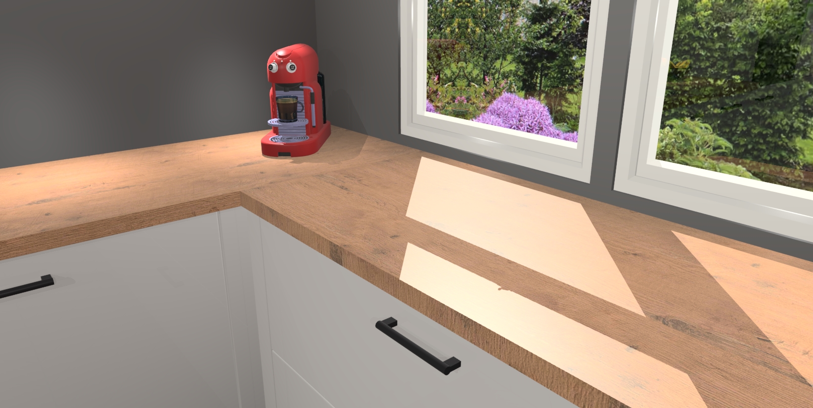 - Bij een hoekwerkblad zijn de hoeken in gevreesd en op maat gemaakt