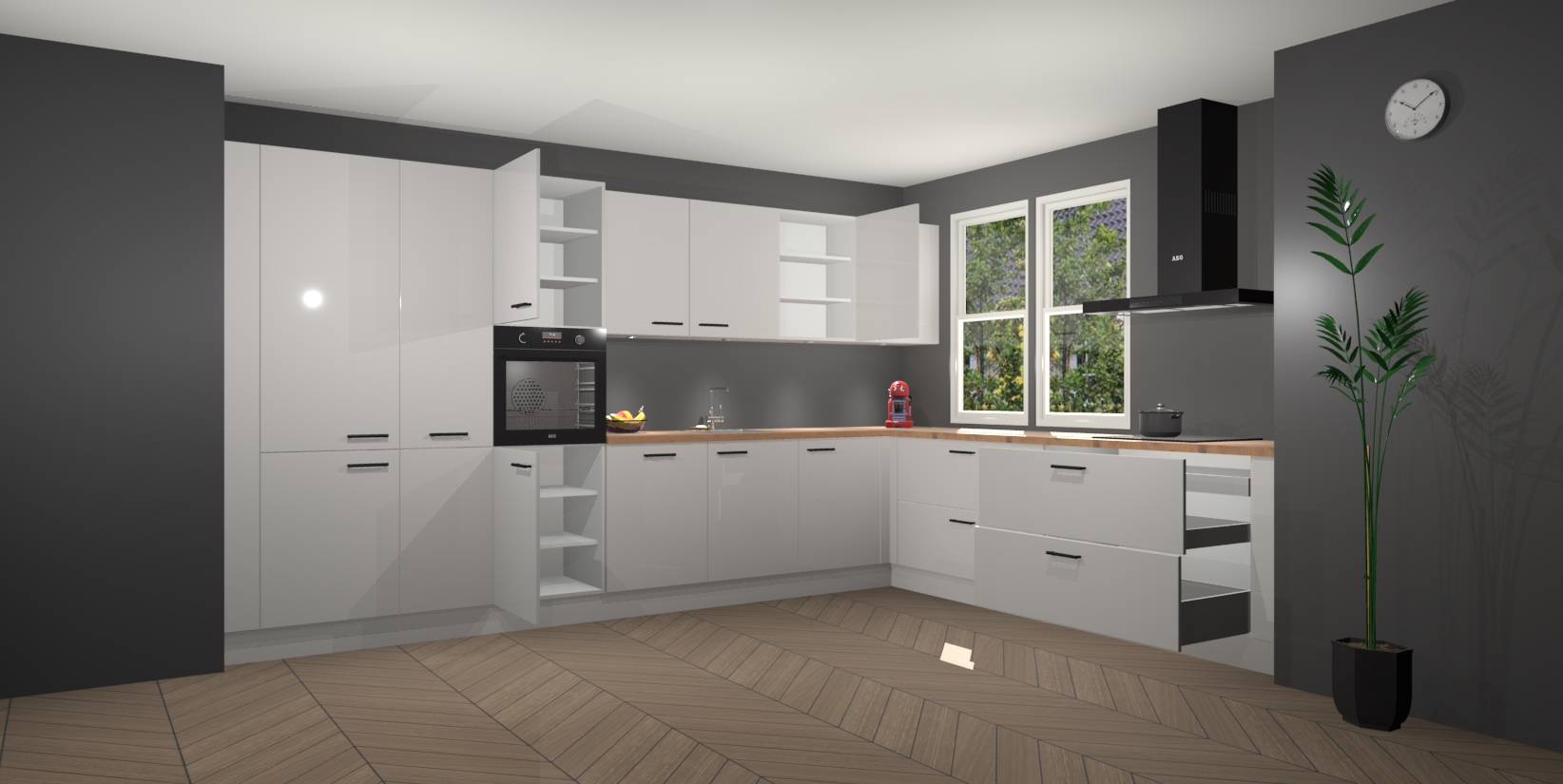 Door het stijlvolle, minimalistische design van de populairste keukens van dit moment te combineren met het gemak en de functionaliteit, heeft u veel opbergruimte en een opgeruimd werkblad. Met de extra bonus van softclose deuren biedt deze witte keuken een eigentijdse maar functionele omgeving voor al uw culinaire behoeften.