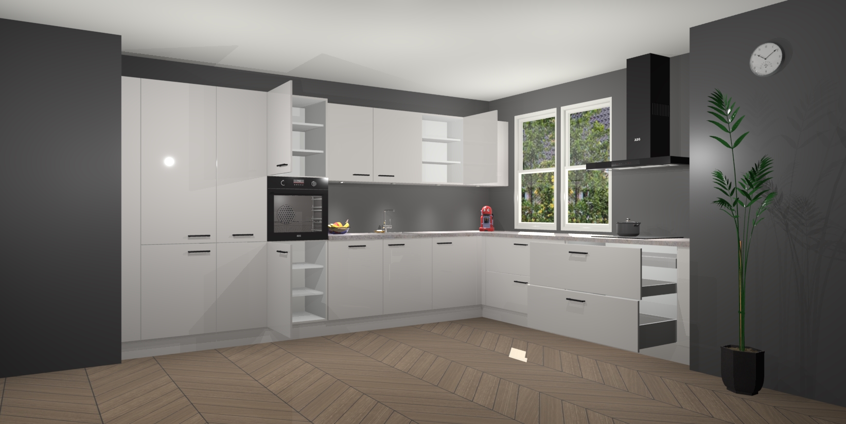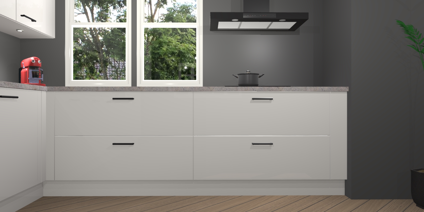 Inclusief plinten, stelpoten en werkblad
