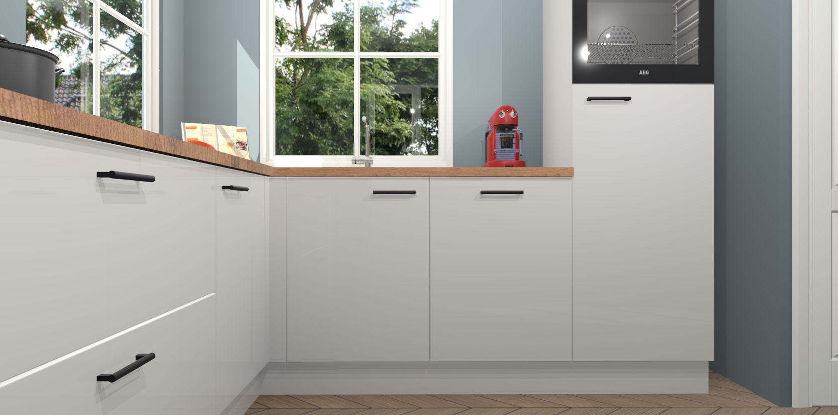 De Zijdegrijze hoogglans keuken Pai bevat vijf essentiële inbouwapparaten - een oven, inductiekookplaat, afzuigkap, vaatwasser en koelkast - zodat u er na levering meteen in kunt. Voor de slimme kopers die weten dat apparaten vaak het verschil kunnen maken tussen functioneel en luxueus, bieden we eenvoudige upgradeopties naar AEG, van oven naar combimagnetron na bestelling of naar een kookplaat met geïntrigeerde afzuiging. En met onze vaste lage prijs en snelle levering binnen zeven weken vanaf de orderbevestiging hoeft u zich geen zorgen te maken over verborgen kosten of lange levertijden die uw droomkeuken kunnen vertragen.