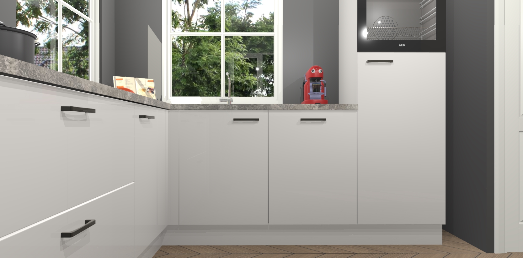 De Zijdegrijze hoogglans keuken Pai bevat vijf essentiële inbouwapparaten - een oven, inductiekookplaat, afzuigkap, vaatwasser en koelkast - zodat u er na levering meteen in kunt. Voor de slimme kopers die weten dat apparaten vaak het verschil kunnen maken tussen functioneel en luxueus, bieden we eenvoudige upgradeopties naar AEG, van oven naar combimagnetron na bestelling of naar een kookplaat met geïntrigeerde afzuiging. En met onze vaste lage prijs en snelle levering binnen zeven weken vanaf de orderbevestiging hoeft u zich geen zorgen te maken over verborgen kosten of lange levertijden die uw droomkeuken kunnen vertragen.