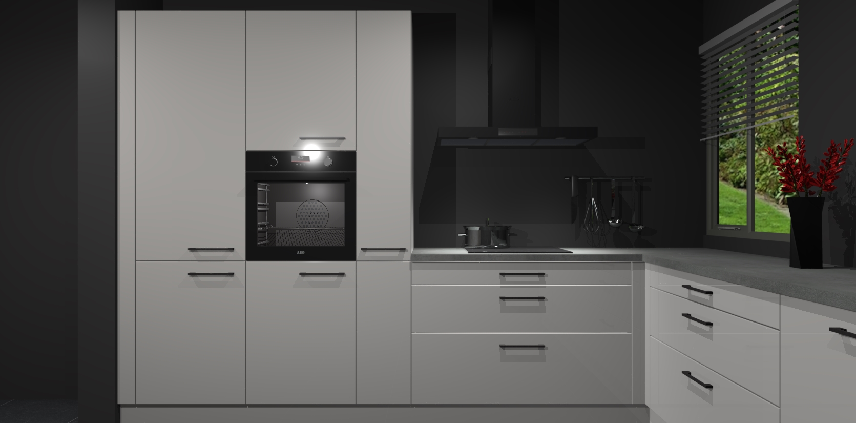 Welkom bij de Zijdegrijze hoogglans keuken Palermo. Deze prachtige keuken zal de komende jaren het middelpunt van de belangstelling in uw huis zijn. Uitgerust met vijf inbouwapparaten komt u nooit kookgereedschap tekort. Bovendien geeft de warme houtlook elke ruimte een uitnodigende en tijdloze uitstraling.