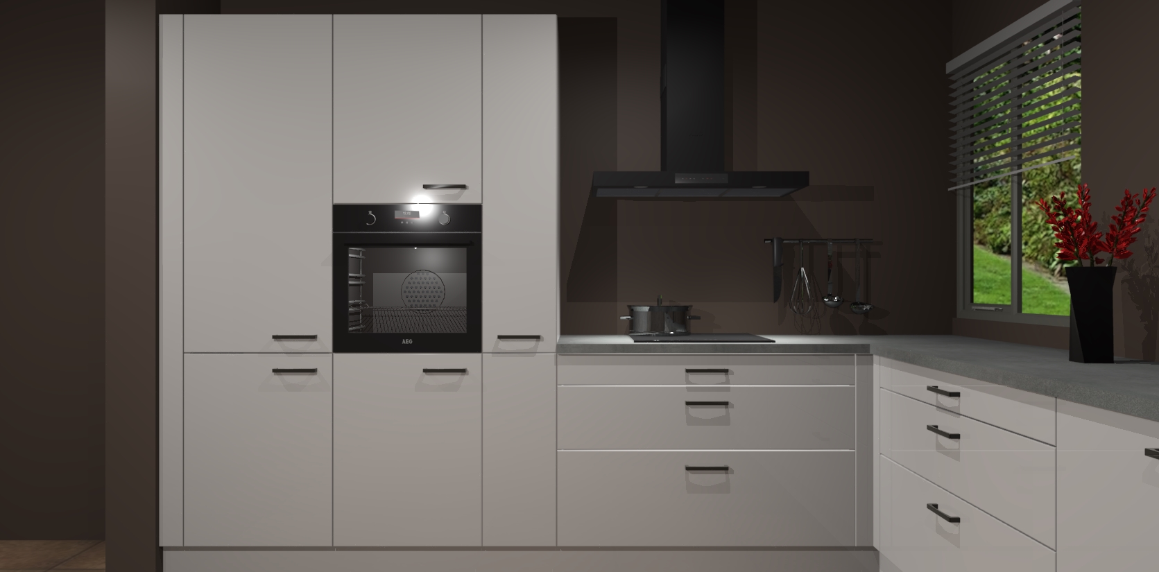 Welkom bij de Zijdegrijze hoogglans keuken Palermo. Deze prachtige keuken zal de komende jaren het middelpunt van de belangstelling in uw huis zijn. Uitgerust met vijf inbouwapparaten komt u nooit kookgereedschap tekort. Bovendien geeft de warme houtlook elke ruimte een uitnodigende en tijdloze uitstraling.