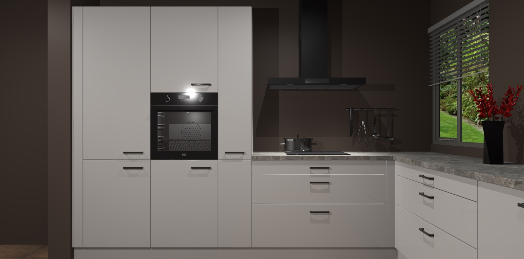 Welkom bij de Zijdegrijze hoogglans keuken Palermo. Deze prachtige keuken zal de komende jaren het middelpunt van de belangstelling in uw huis zijn. Uitgerust met vijf inbouwapparaten komt u nooit kookgereedschap tekort. Bovendien geeft de warme houtlook elke ruimte een uitnodigende en tijdloze uitstraling.