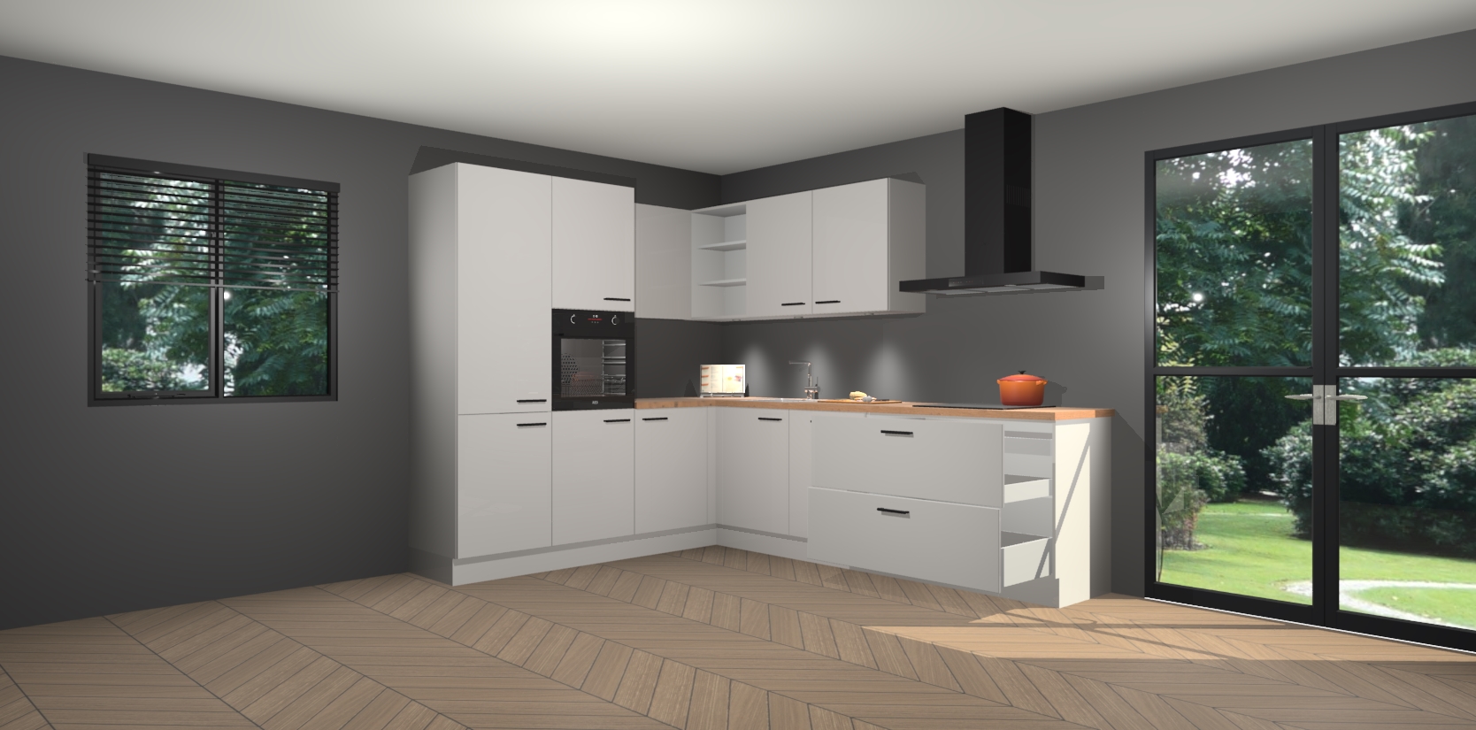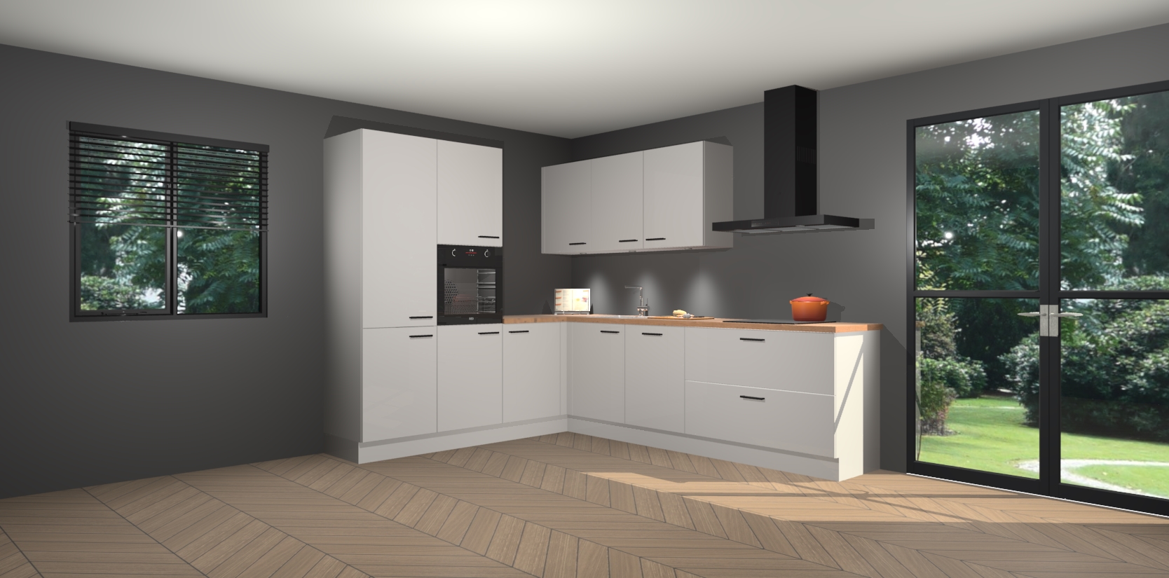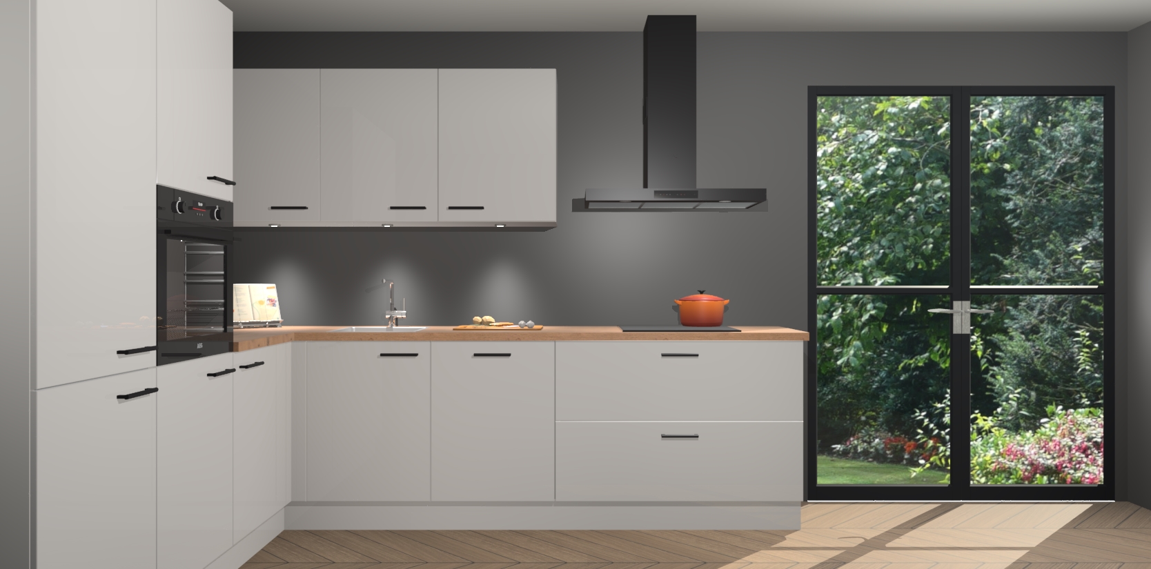 Maak kennis met de zijdegrijze hoogglans keuken Parla - de perfecte aanvulling voor uw moderne keuken! Ervaar tijdloos design, elegantie en een chique uitstraling met onze zwarte handgrepen, soft-close deuren en veel opbergruimte. Dit alles wordt aangeboden tegen een vaste lage prijs voor ongeëvenaarde Duitse keukenkwaliteit!