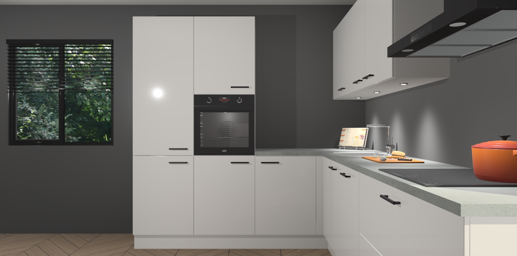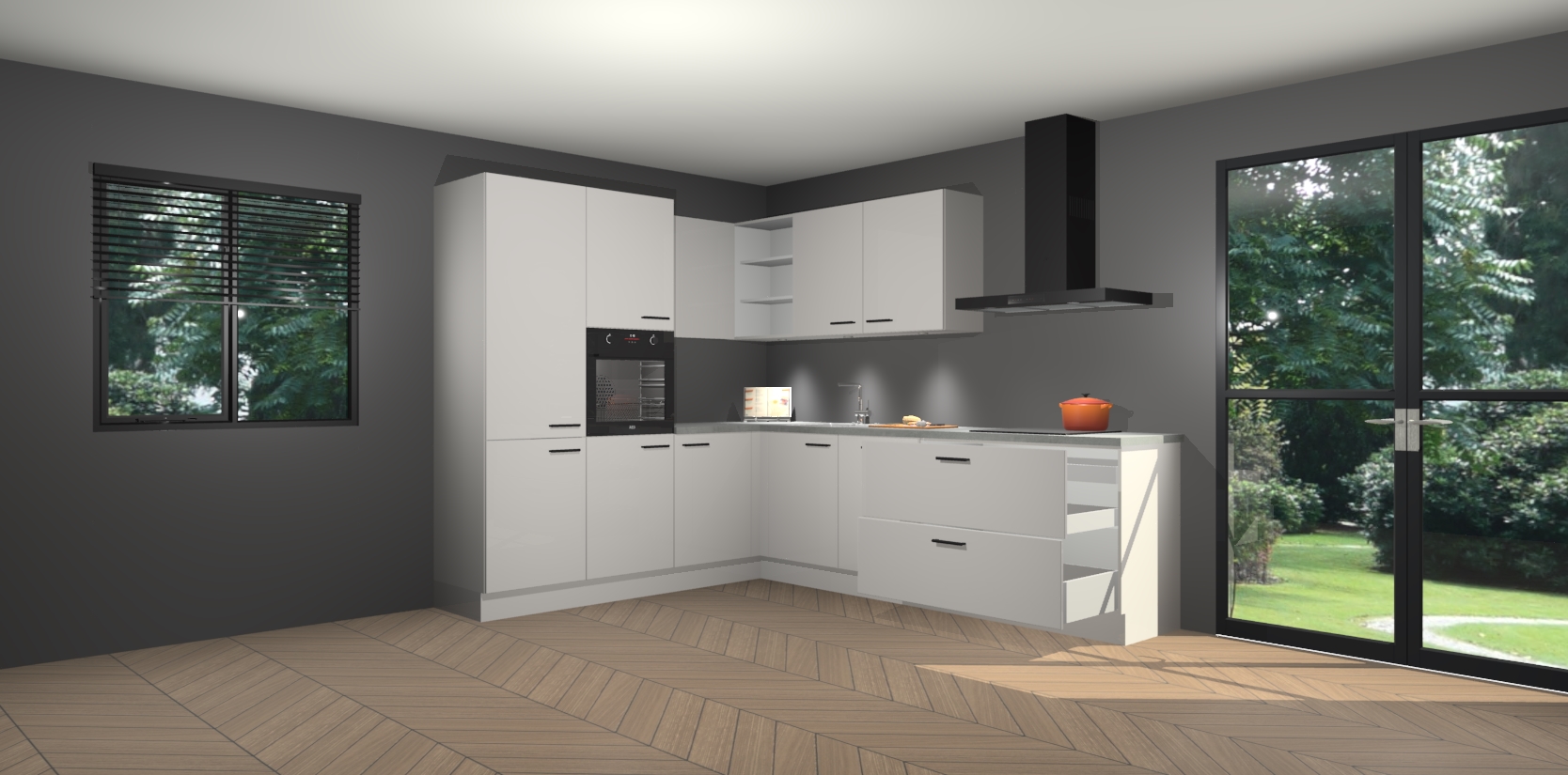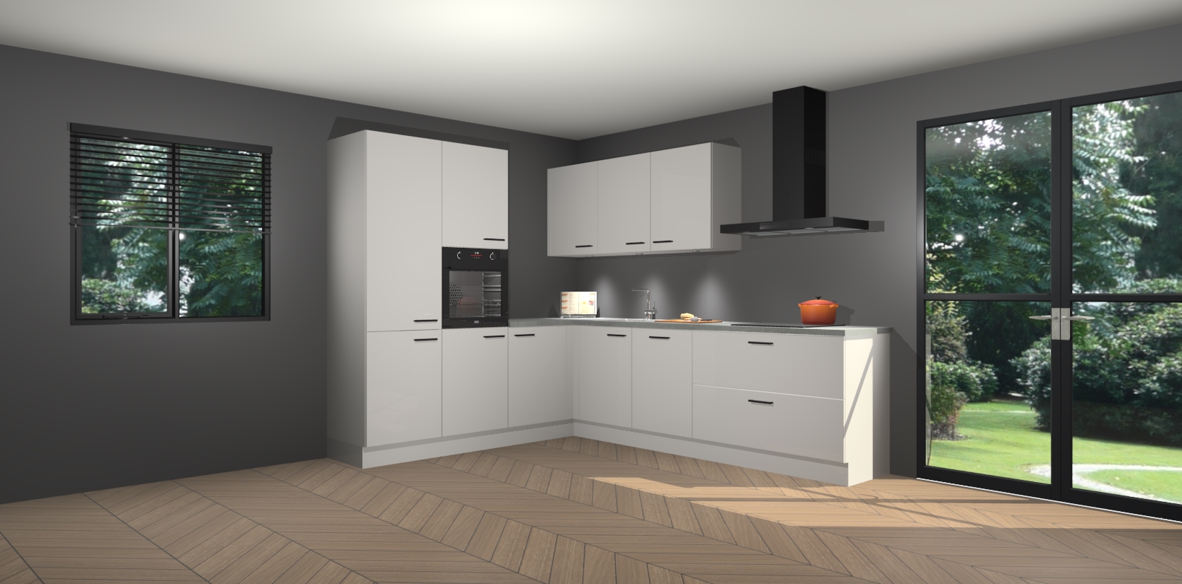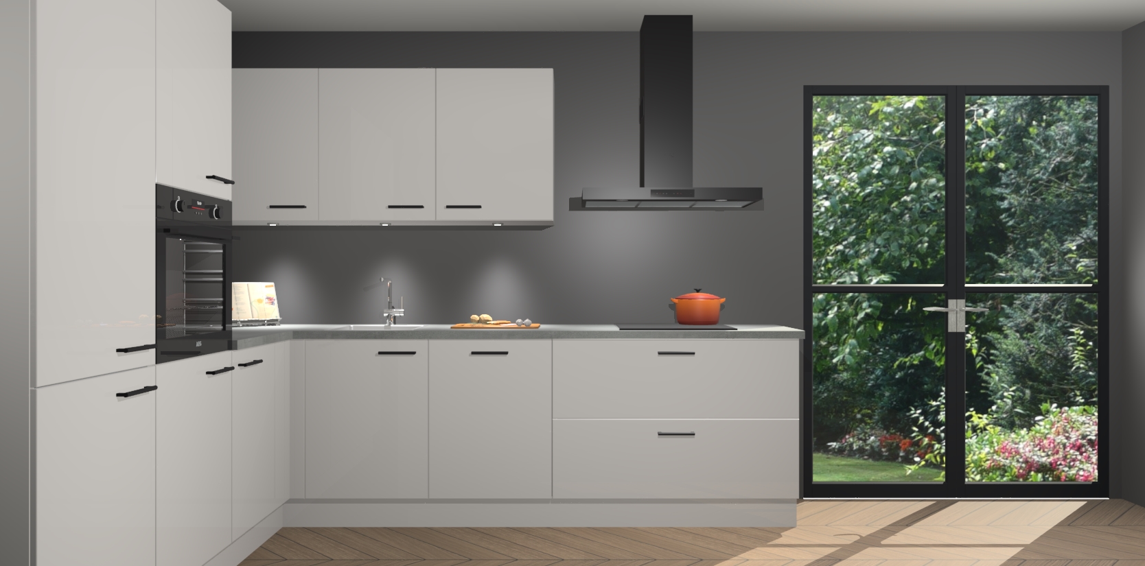 Maak kennis met de zijdegrijze hoogglans keuken Parla - de perfecte aanvulling voor uw moderne keuken! Ervaar tijdloos design, elegantie en een chique uitstraling met onze zwarte handgrepen, soft-close deuren en veel opbergruimte. Dit alles wordt aangeboden tegen een vaste lage prijs voor ongeëvenaarde Duitse keukenkwaliteit!