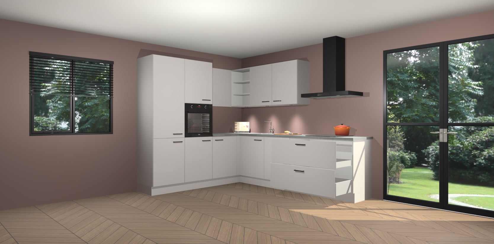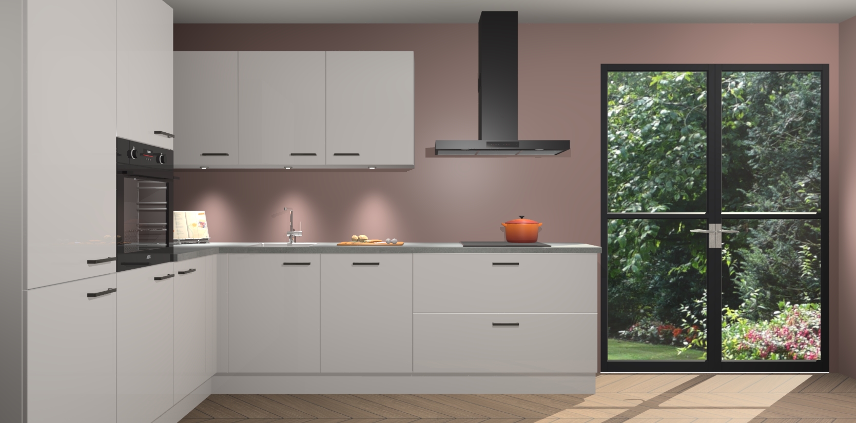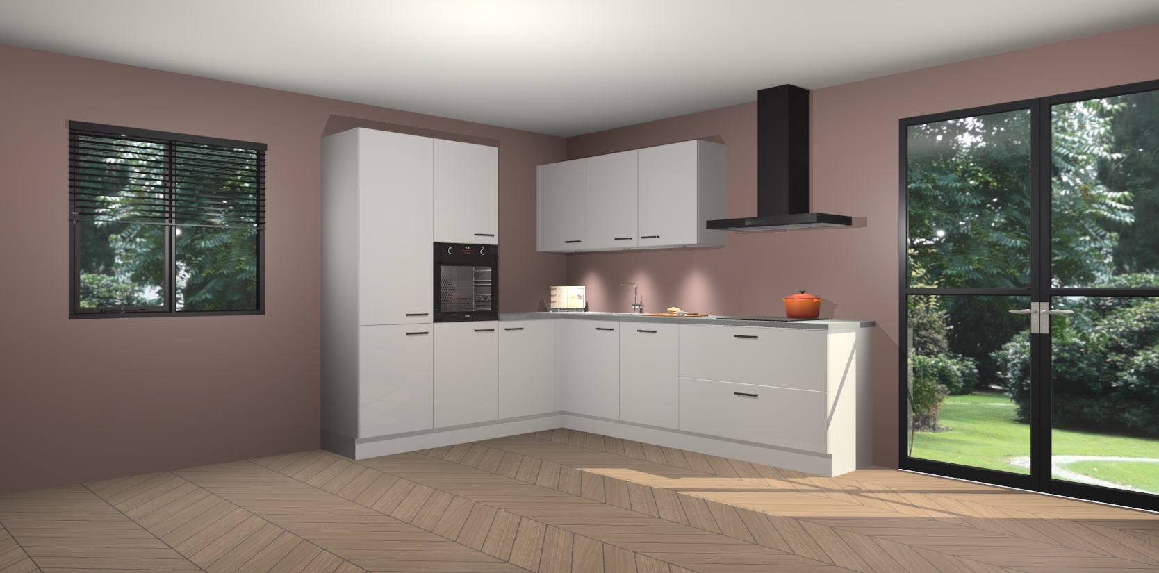 Maak kennis met de zijdegrijze hoogglans keuken Parla - de perfecte aanvulling voor uw moderne keuken! Ervaar tijdloos design, elegantie en een chique uitstraling met onze zwarte handgrepen, soft-close deuren en veel opbergruimte. Dit alles wordt aangeboden tegen een vaste lage prijs voor ongeëvenaarde Duitse keukenkwaliteit!