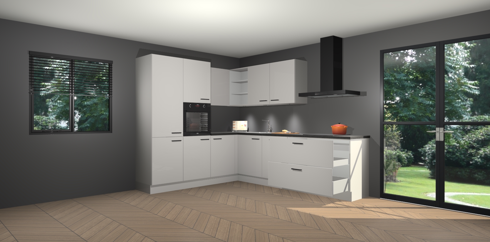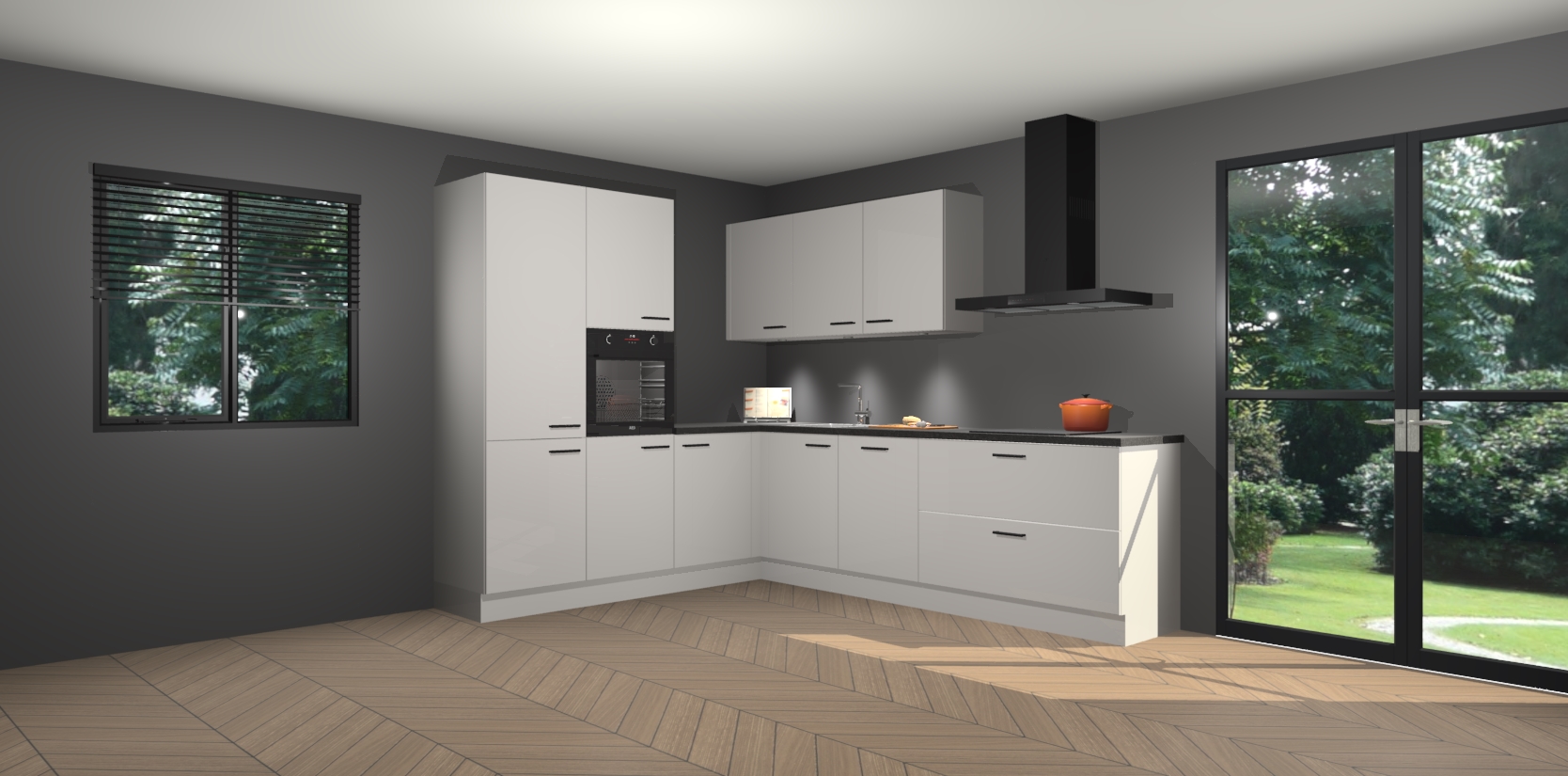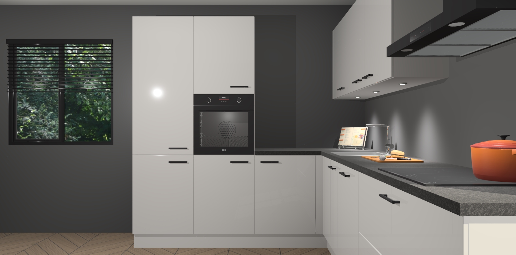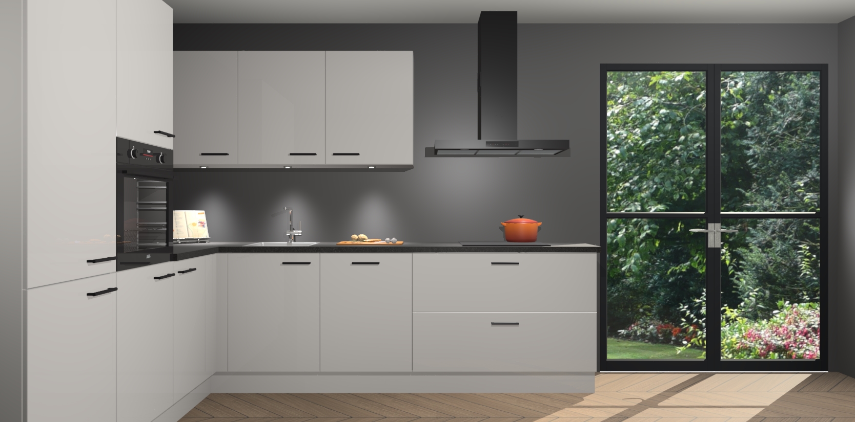 Maak kennis met de zijdegrijze hoogglans keuken Parla - de perfecte aanvulling voor uw moderne keuken! Ervaar tijdloos design, elegantie en een chique uitstraling met onze zwarte handgrepen, soft-close deuren en veel opbergruimte. Dit alles wordt aangeboden tegen een vaste lage prijs voor ongeëvenaarde Duitse keukenkwaliteit!