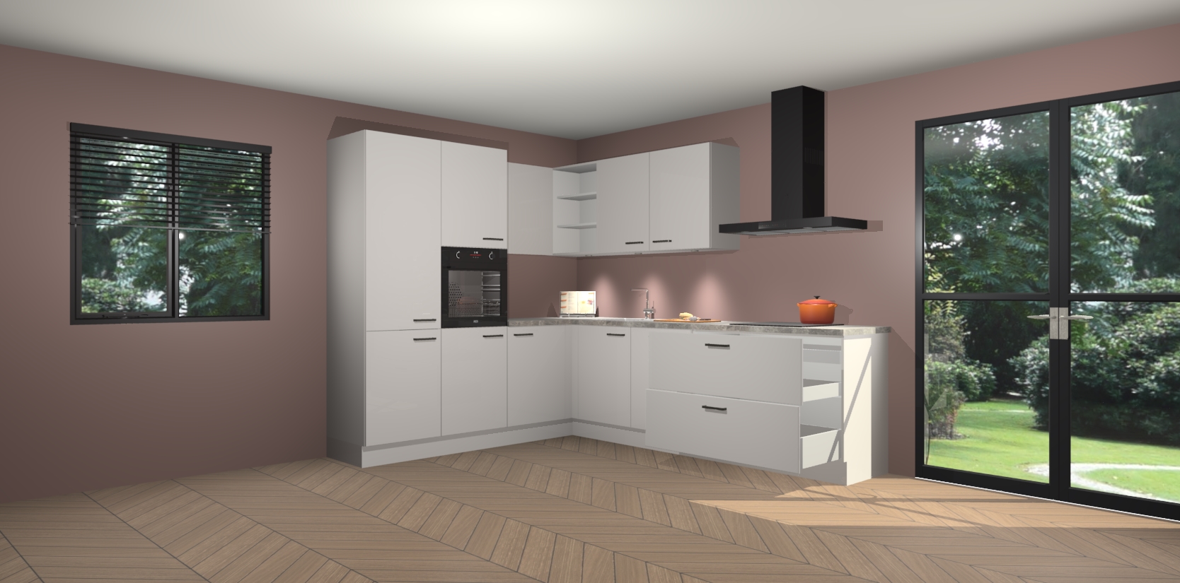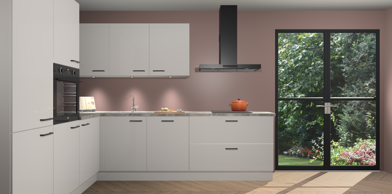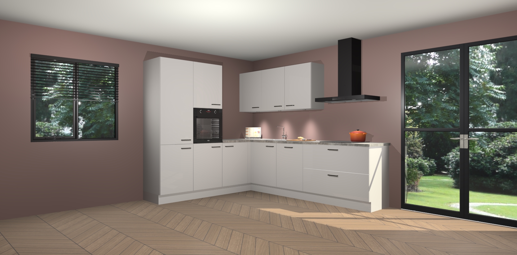Maak kennis met de zijdegrijze hoogglans keuken Parla - de perfecte aanvulling voor uw moderne keuken! Ervaar tijdloos design, elegantie en een chique uitstraling met onze zwarte handgrepen, soft-close deuren en veel opbergruimte. Dit alles wordt aangeboden tegen een vaste lage prijs voor ongeëvenaarde Duitse keukenkwaliteit!