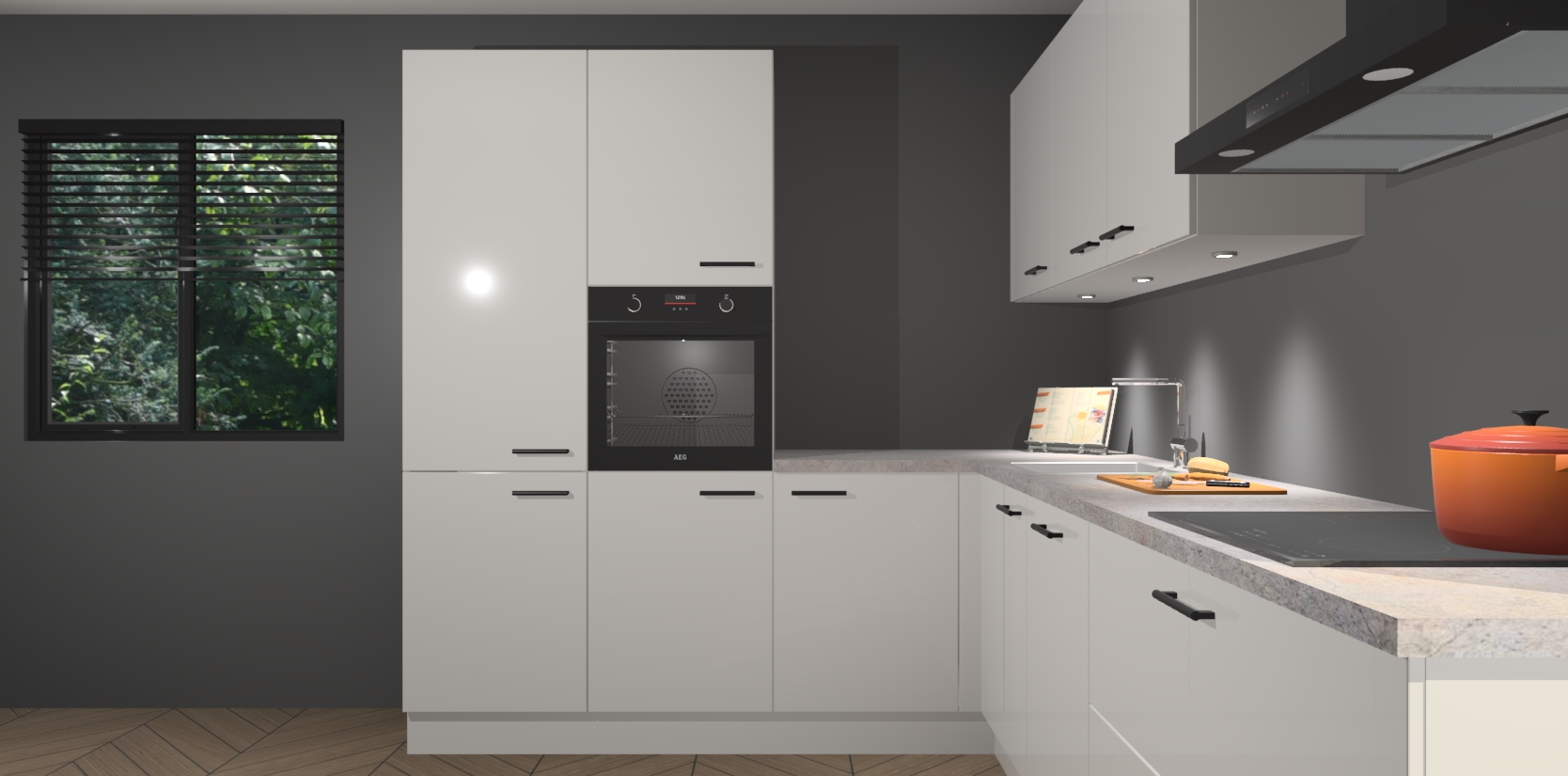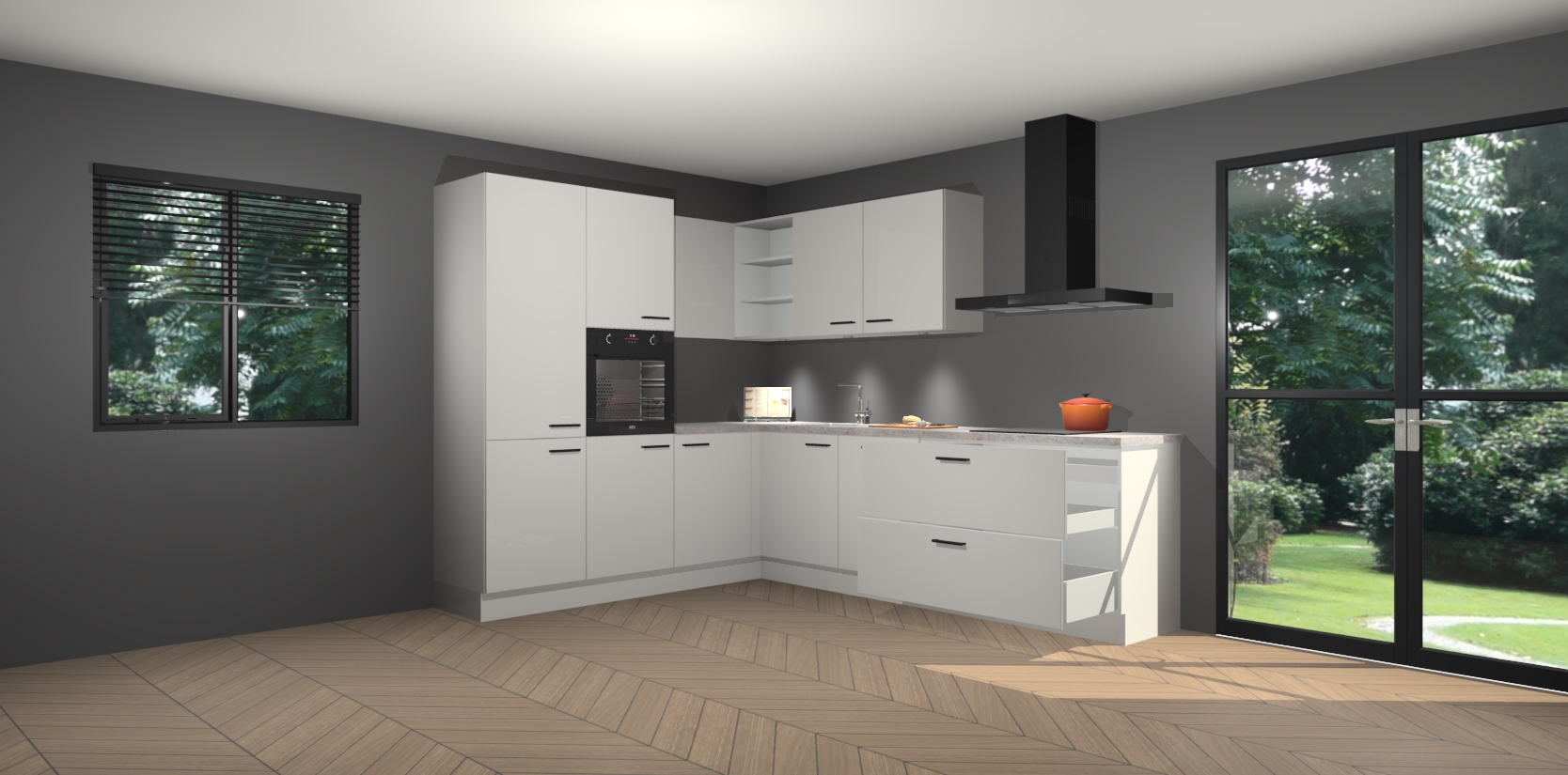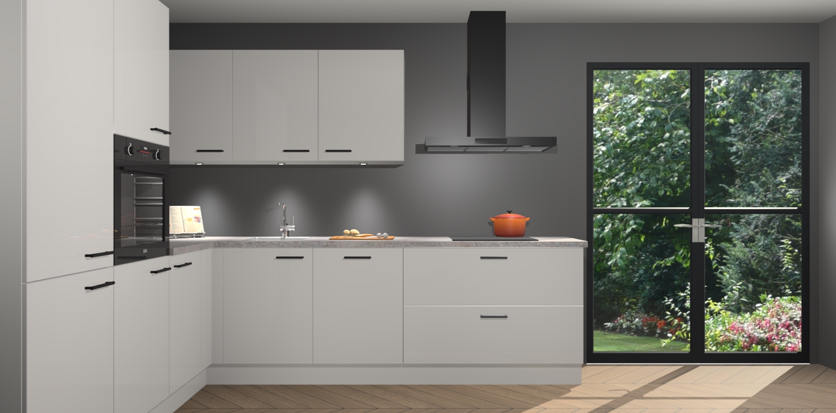 Maak kennis met de zijdegrijze hoogglans keuken Parla - de perfecte aanvulling voor uw moderne keuken! Ervaar tijdloos design, elegantie en een chique uitstraling met onze zwarte handgrepen, soft-close deuren en veel opbergruimte. Dit alles wordt aangeboden tegen een vaste lage prijs voor ongeëvenaarde Duitse keukenkwaliteit!