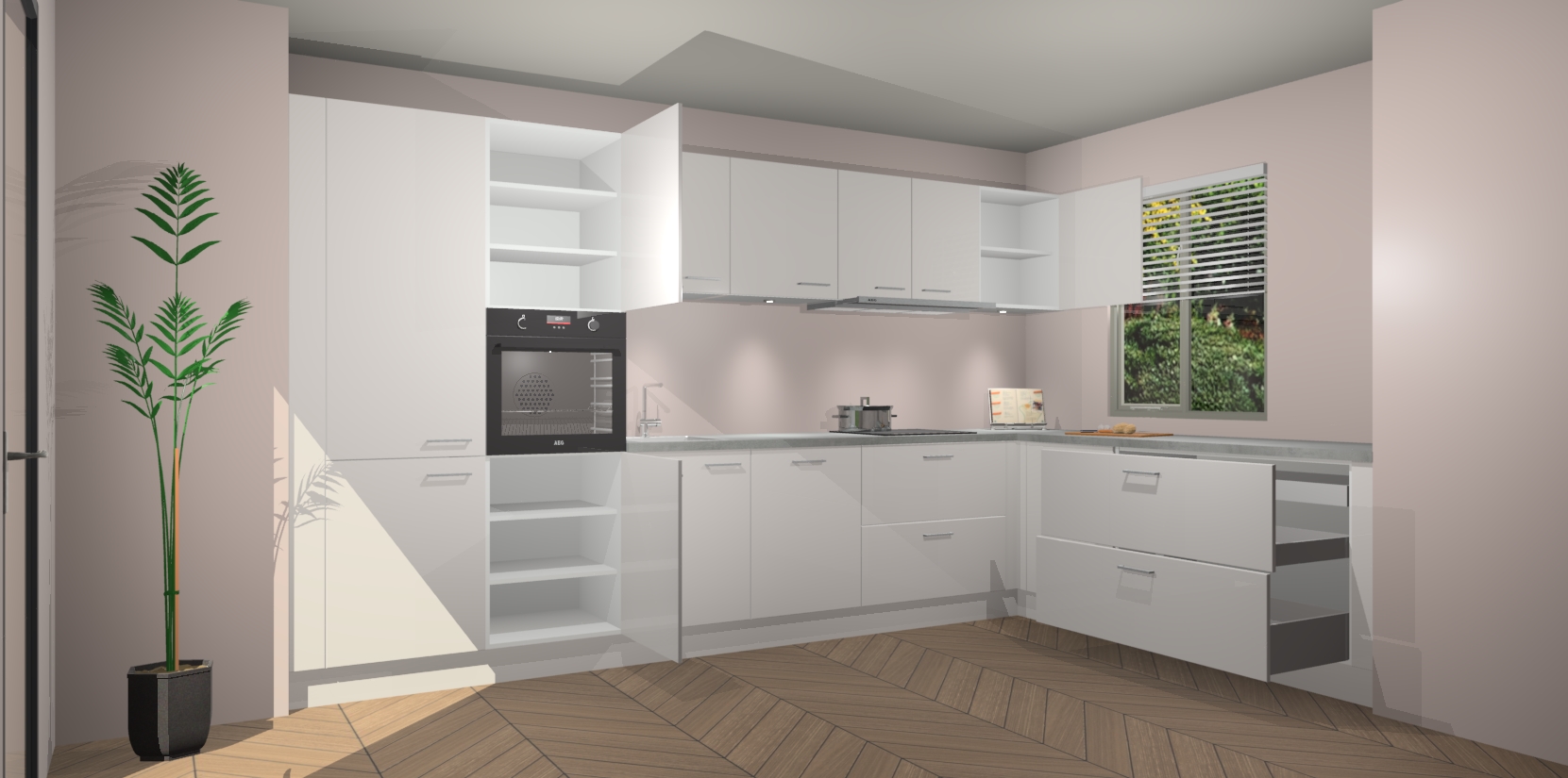 Inclusief plinten, stelpoten en werkblad