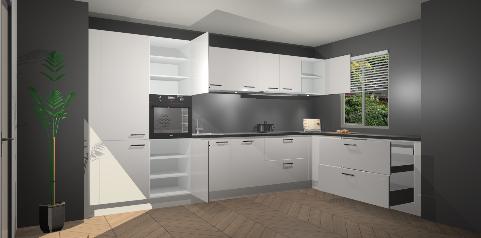 Inclusief plinten, stelpoten en werkblad