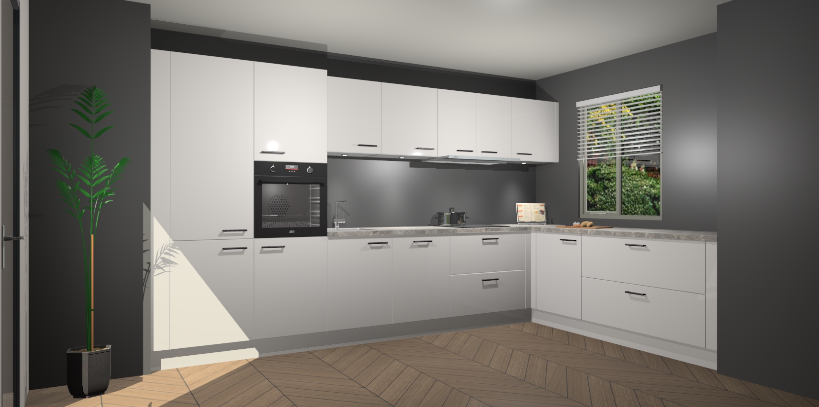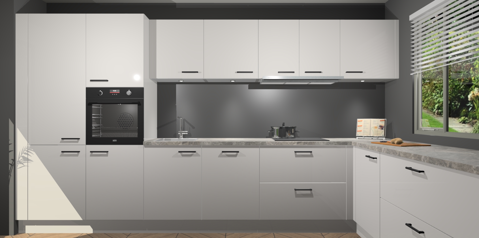 Verwelkom de natuurlijke warmte van de Zijdegrijze Hoogglans keuken Petten in uw huis. Deze prachtige hoekkeuken met zijn moderne design en warme houten look geeft u meer dan genoeg opbergruimte om uw comfortabel te voelen in uw keuken. Geniet van soft-close deuren die al uw gasten het gevoel zullen geven dat ze zich in een luxueuze ruimte bevinden.