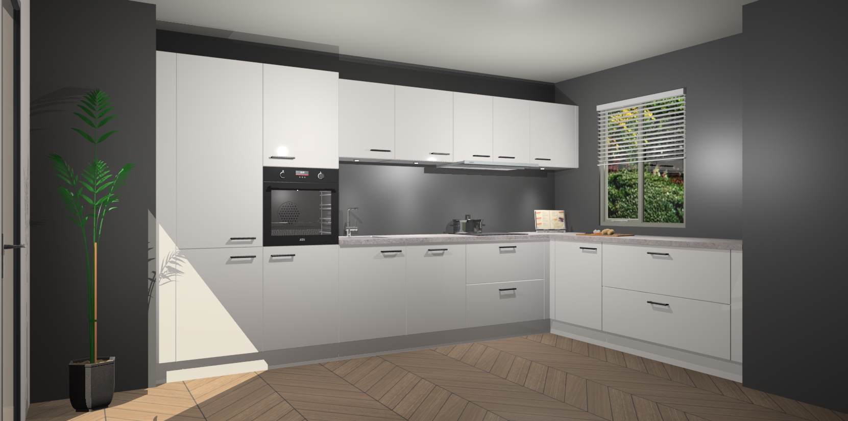 Verwelkom de natuurlijke warmte van de Zijdegrijze Hoogglans keuken Petten in uw huis. Deze prachtige hoekkeuken met zijn moderne design en warme houten look geeft u meer dan genoeg opbergruimte om uw comfortabel te voelen in uw keuken. Geniet van soft-close deuren die al uw gasten het gevoel zullen geven dat ze zich in een luxueuze ruimte bevinden.