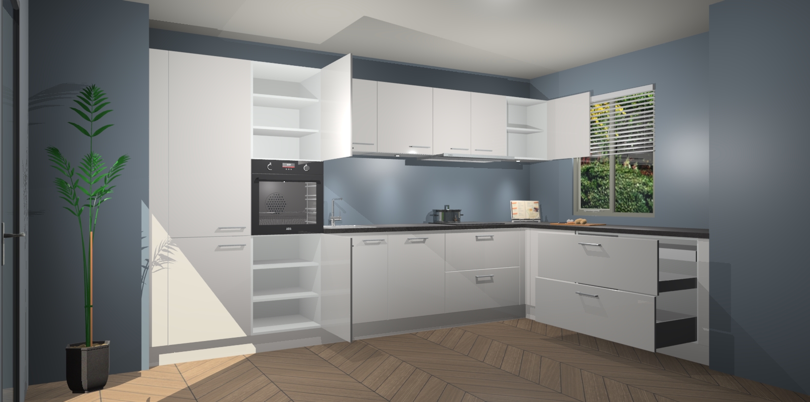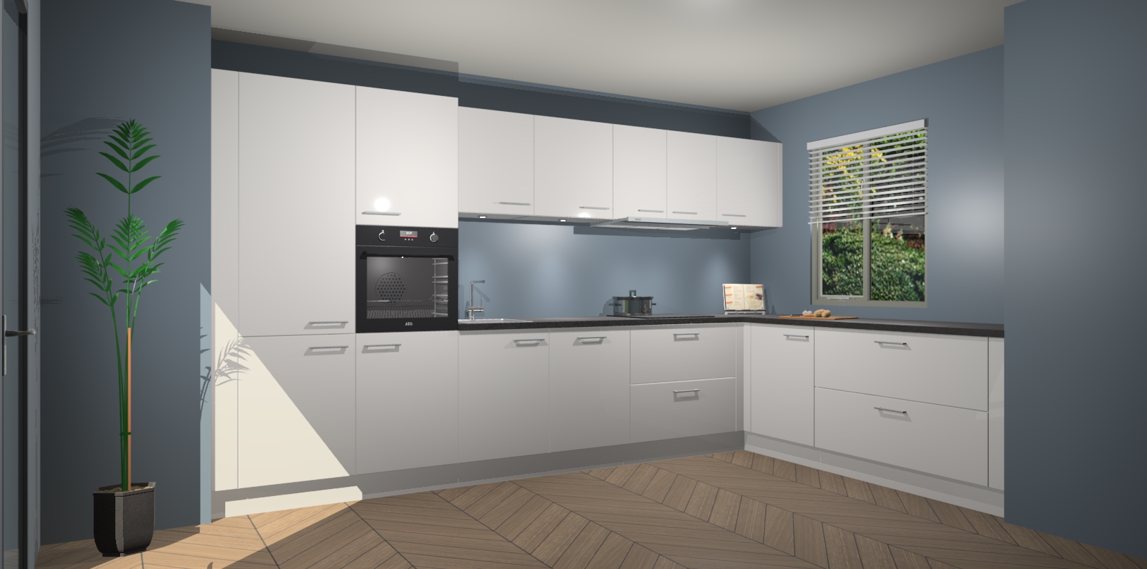 Verwelkom de natuurlijke warmte van de Zijdegrijze Hoogglans keuken Petten in uw huis. Deze prachtige hoekkeuken met zijn moderne design en warme houten look geeft u meer dan genoeg opbergruimte om uw comfortabel te voelen in uw keuken. Geniet van soft-close deuren die al uw gasten het gevoel zullen geven dat ze zich in een luxueuze ruimte bevinden.