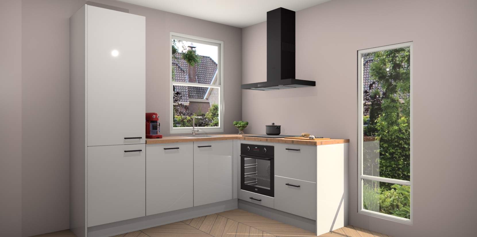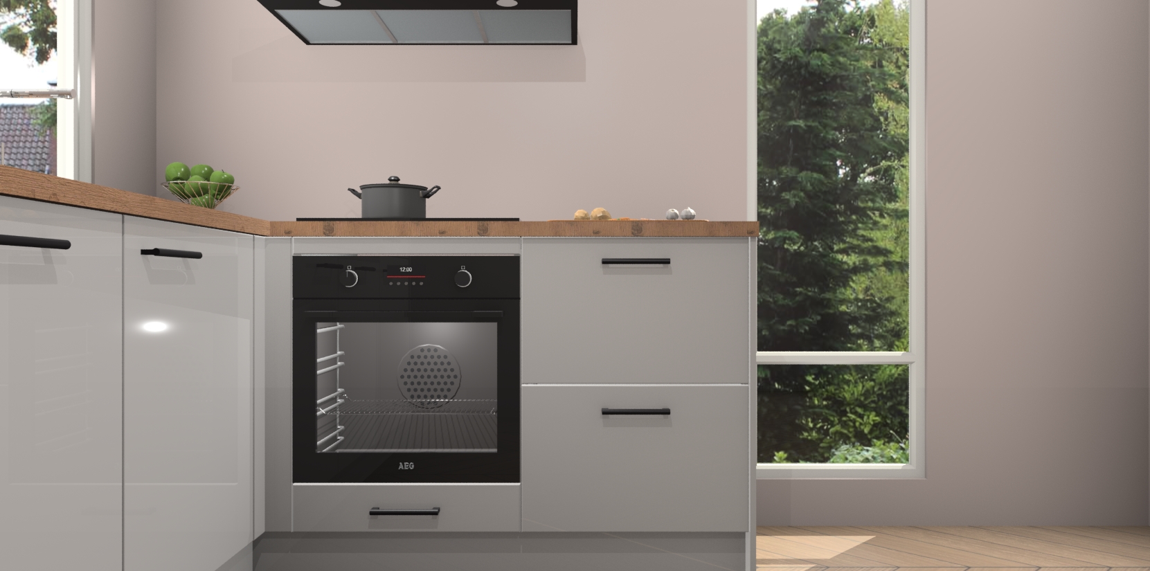 De Zijdegrizje hoogglans keuken Phuket heeft alles wat u maar kunt wensen. Niet alleen zijn er softclose deuren, maar ook 5 ingebouwde apparaten: een oven, inductiekookplaat, afzuigkap, vaatwasser en koelkast - waarbij u later gemakkelijk naar het AEG merk, van inductiekookplaat naar kookplaat met geïntegreerde afzuiging of van oven naar combimagnetron kunt upgraden. Dat alles tegen een vast laag tarief! Bovendien geeft de Zijdegrijze hoogglans keuken Phuket supersnelle levering van 7 weken. Echt iets voor u als u er niet op wilt wachten om het resultaat te zien in eigen keuken!