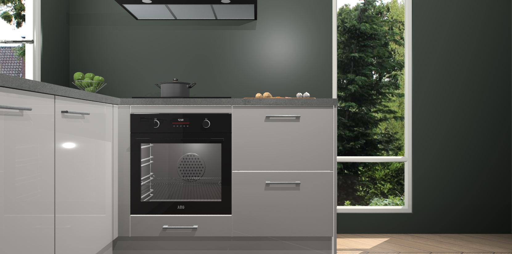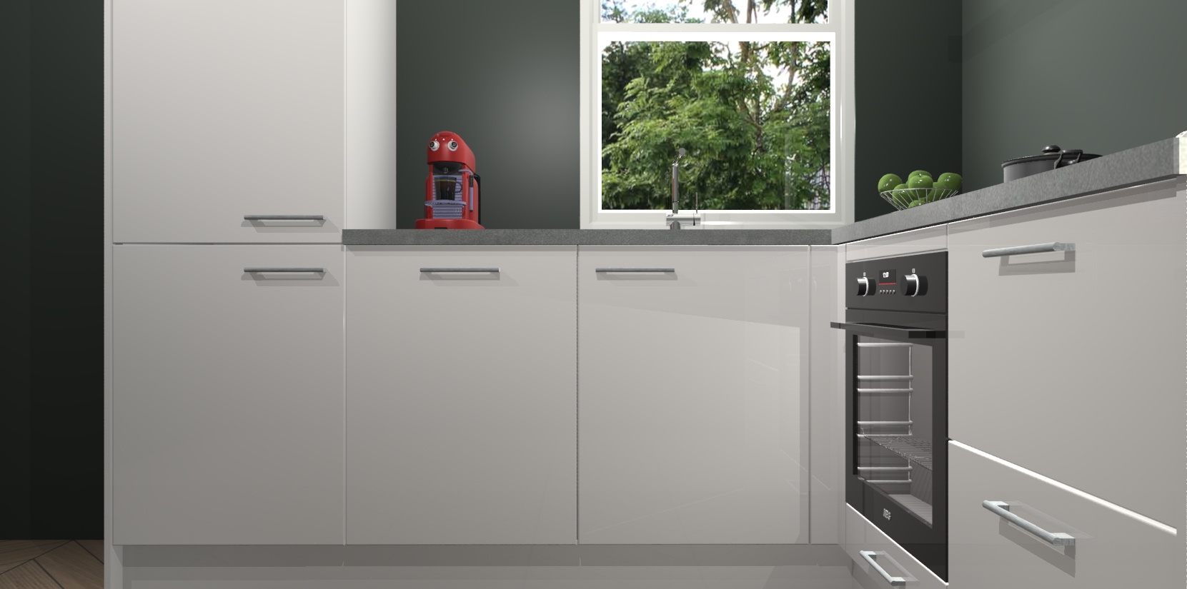De Zijdegrizje hoogglans keuken Phuket heeft alles wat u maar kunt wensen. Niet alleen zijn er softclose deuren, maar ook 5 ingebouwde apparaten: een oven, inductiekookplaat, afzuigkap, vaatwasser en koelkast - waarbij u later gemakkelijk naar het AEG merk, van inductiekookplaat naar kookplaat met geïntegreerde afzuiging of van oven naar combimagnetron kunt upgraden. Dat alles tegen een vast laag tarief! Bovendien geeft de Zijdegrijze hoogglans keuken Phuket supersnelle levering van 7 weken. Echt iets voor u als u er niet op wilt wachten om het resultaat te zien in eigen keuken!