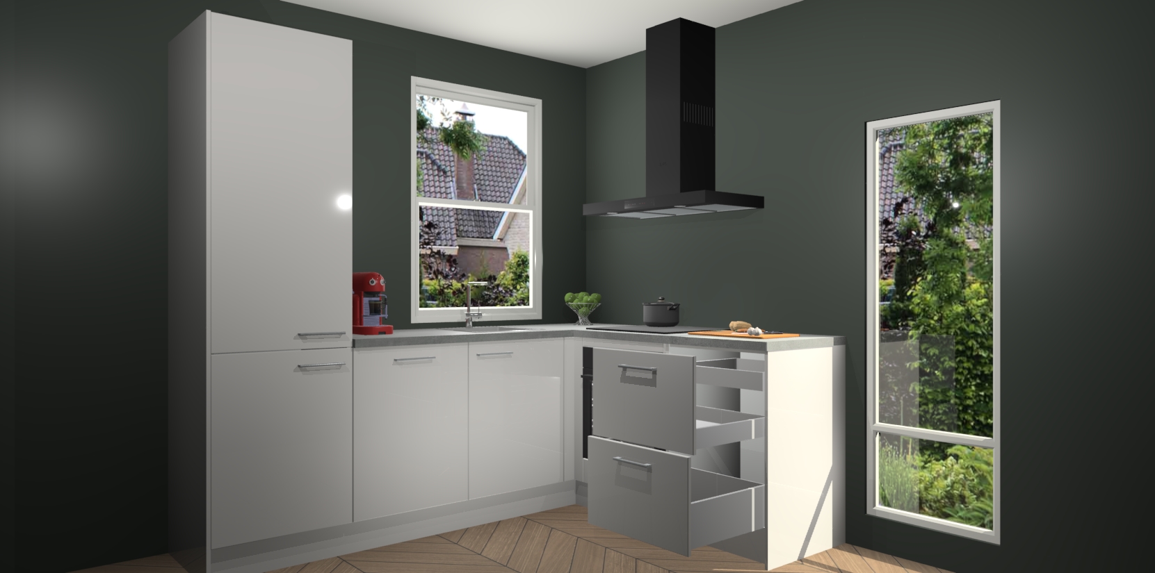 De prachtige Zijdegrijze hoogglans keuken Phuket is de perfecte keuze als u op zoek bent naar een moderne hoekkeuken met alle luxe en comfort die u kunt verwachten! De uitstraling in het houtlook-design draagt bij aan de warme sfeer die u nu al voelt wanneer u er naar kijkt. Heeft u genoeg van ouderwetse keukens? Probeer dan direct deze moderne, mooie hoekkeukens en laat iedereen verbluft achter!