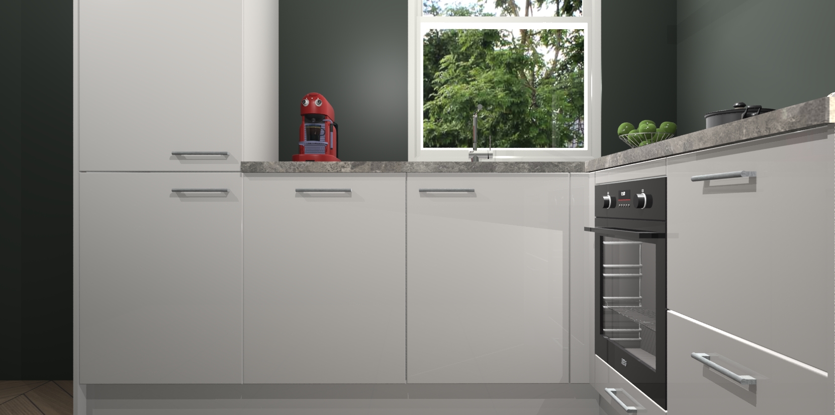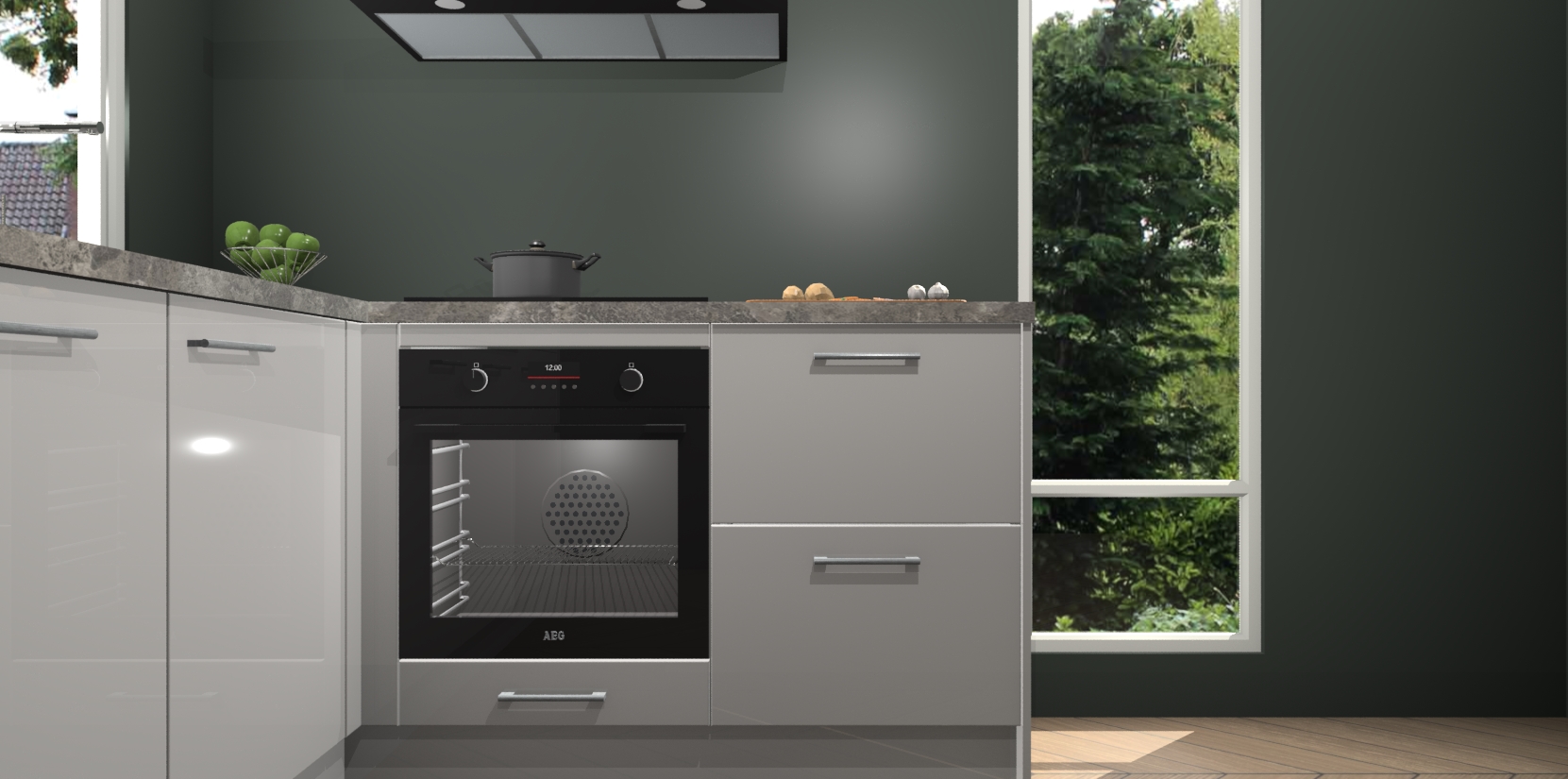 De Zijdegrizje hoogglans keuken Phuket heeft alles wat u maar kunt wensen. Niet alleen zijn er softclose deuren, maar ook 5 ingebouwde apparaten: een oven, inductiekookplaat, afzuigkap, vaatwasser en koelkast - waarbij u later gemakkelijk naar het AEG merk, van inductiekookplaat naar kookplaat met geïntegreerde afzuiging of van oven naar combimagnetron kunt upgraden. Dat alles tegen een vast laag tarief! Bovendien geeft de Zijdegrijze hoogglans keuken Phuket supersnelle levering van 7 weken. Echt iets voor u als u er niet op wilt wachten om het resultaat te zien in eigen keuken!
