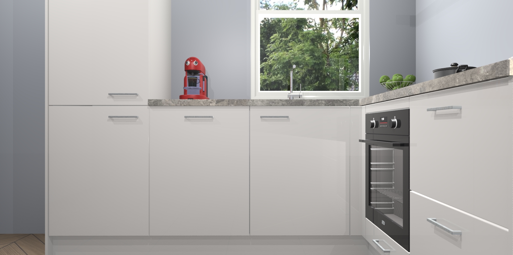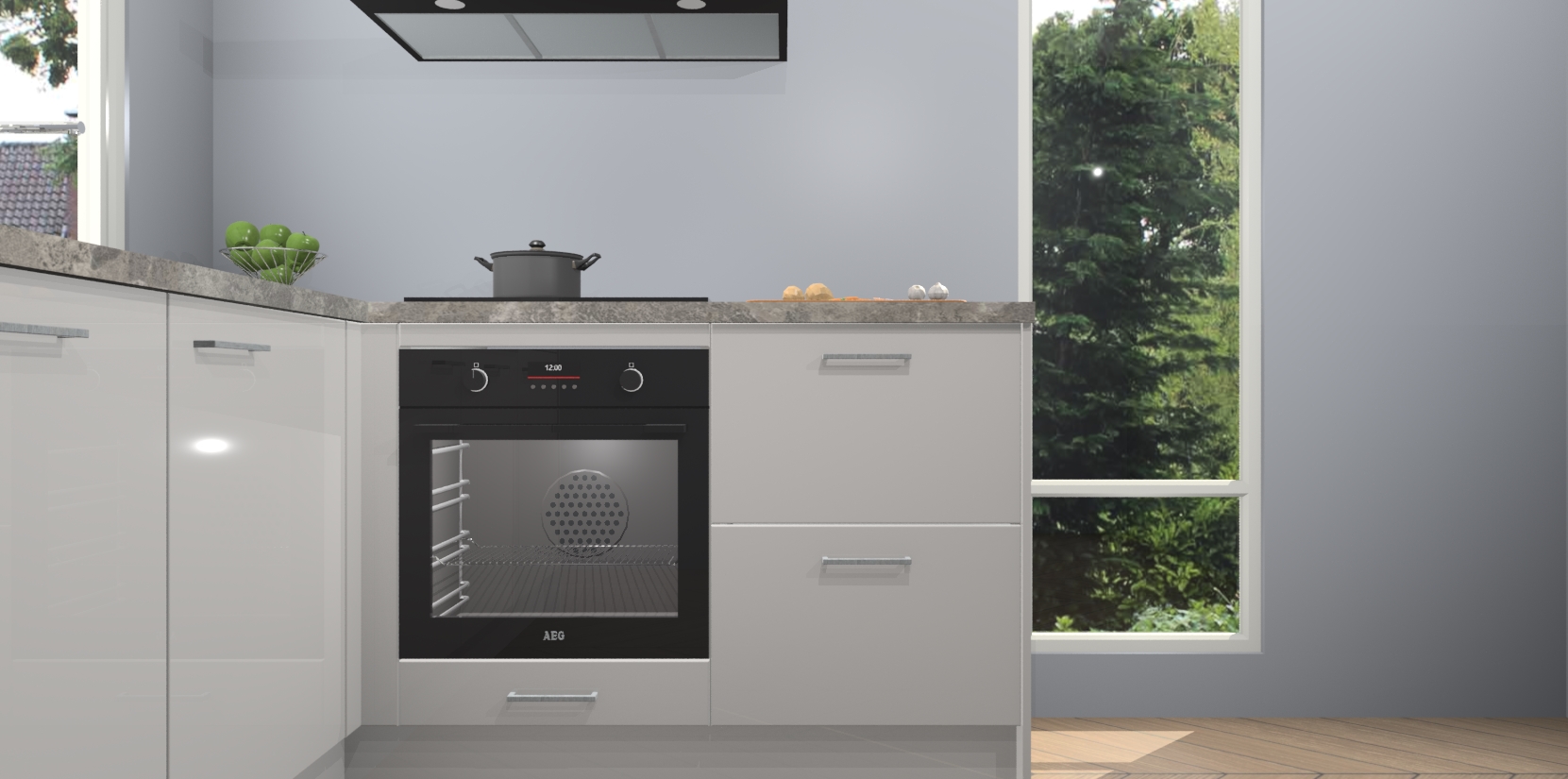 De Zijdegrijze hoogglans keuken Phuket heeft alles wat u maar kunt wensen. Niet alleen zijn er softclose deuren, maar ook 5 ingebouwde apparaten: een oven, inductiekookplaat, afzuigkap, vaatwasser en koelkast - waarbij u later gemakkelijk naar het AEG merk, van inductiekookplaat naar kookplaat met geïntegreerde afzuiging of van oven naar combimagnetron kunt upgraden. Dat alles tegen een vast laag tarief! Bovendien geeft de Zijdegrijze hoogglans keuken Phuket supersnelle levering van 7 weken. Echt iets voor u als u er niet op wilt wachten om het resultaat te zien in eigen keuken!