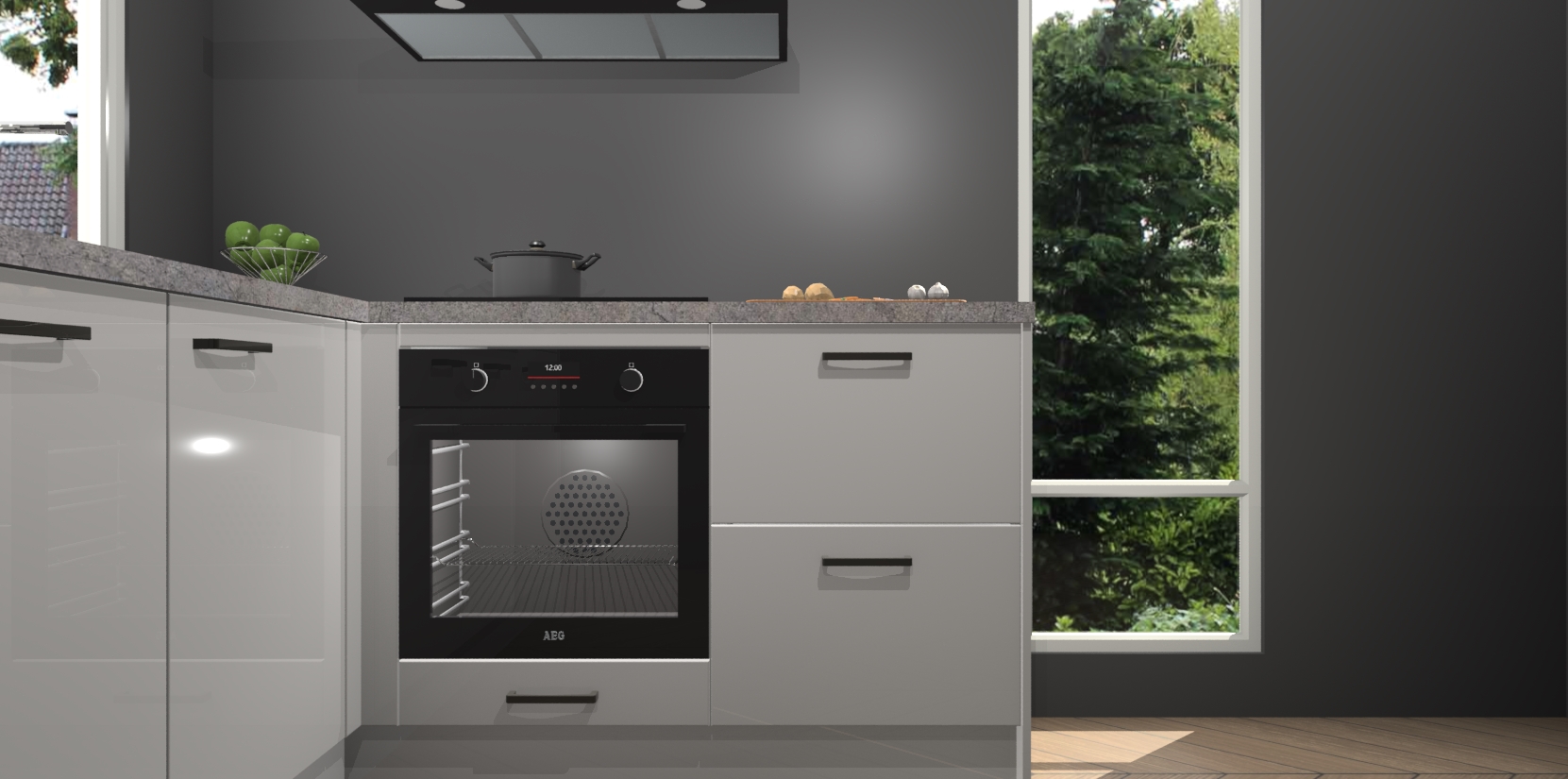 De Zijdegrizje hoogglans keuken Phuket heeft alles wat u maar kunt wensen. Niet alleen zijn er softclose deuren, maar ook 5 ingebouwde apparaten: een oven, inductiekookplaat, afzuigkap, vaatwasser en koelkast - waarbij u later gemakkelijk naar het AEG merk, van inductiekookplaat naar kookplaat met geïntegreerde afzuiging of van oven naar combimagnetron kunt upgraden. Dat alles tegen een vast laag tarief! Bovendien geeft de Zijdegrijze hoogglans keuken Phuket supersnelle levering van 7 weken. Echt iets voor u als u er niet op wilt wachten om het resultaat te zien in eigen keuken!