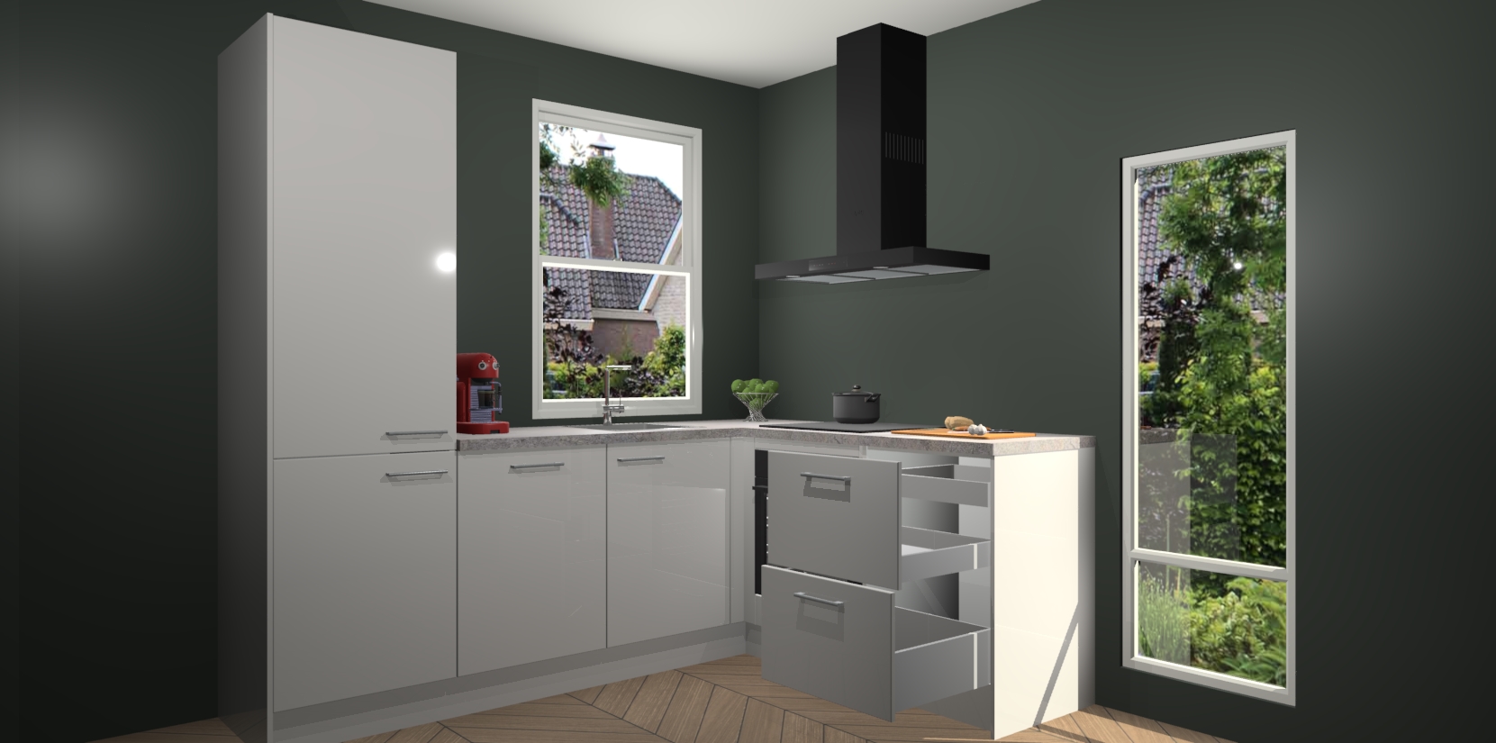 De prachtige Zijdegrijze hoogglans keuken Phuket is de perfecte keuze als u op zoek bent naar een moderne hoekkeuken met alle luxe en comfort die u kunt verwachten! De uitstraling in het houtlook-design draagt bij aan de warme sfeer die u nu al voelt wanneer u er naar kijkt. Heeft u genoeg van ouderwetse keukens? Probeer dan direct deze moderne, mooie hoekkeukens en laat iedereen verbluft achter!