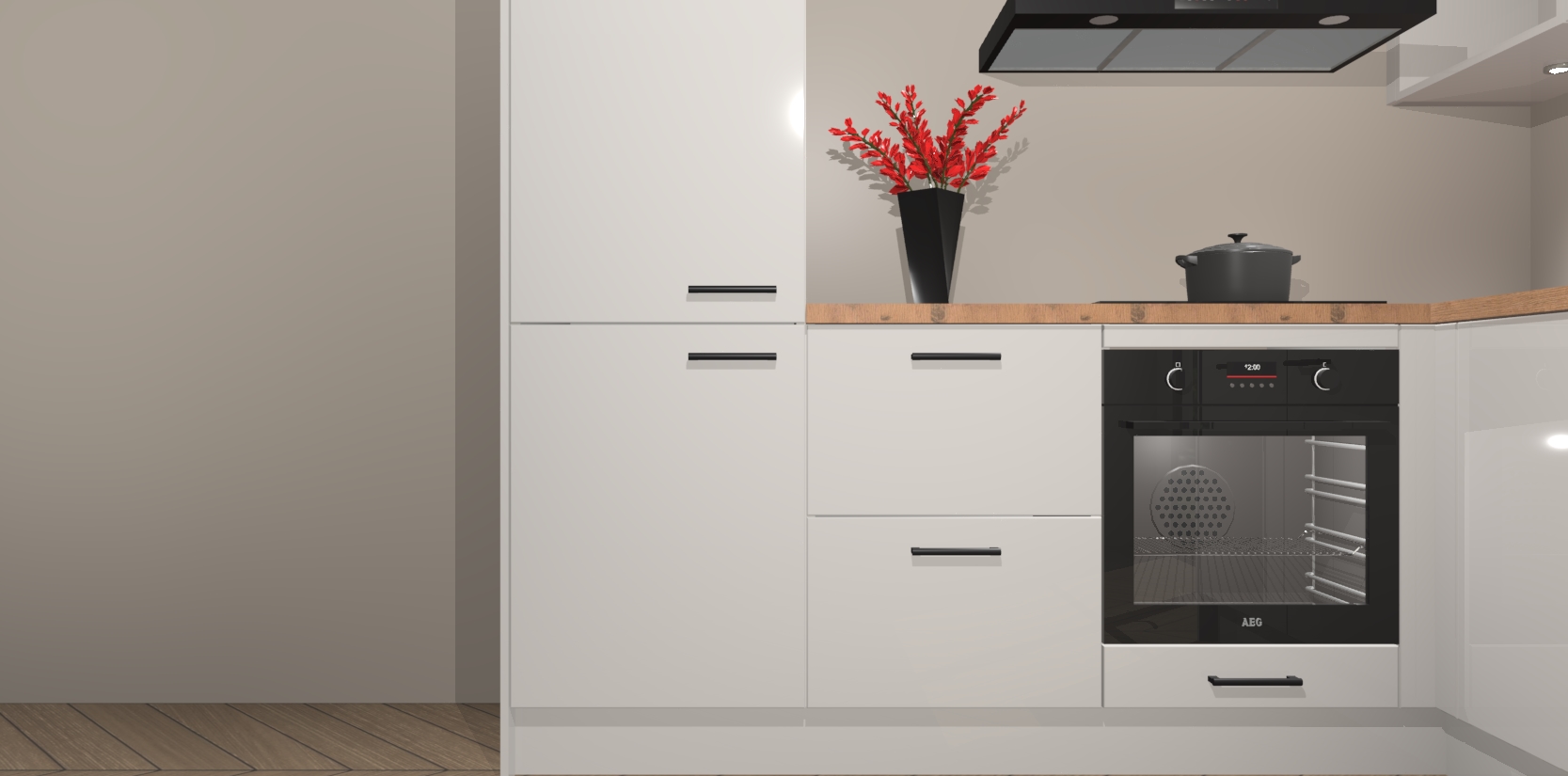 Om dingen nog beter te maken, zijn er allerlei extra's ingebouwd. We hebben 5 ingebouwde apparaten standaard bij deze keuken inbegrepen. Een oven, inductiekookplaat, afzuigkap, vaatwasser en koelkast. Deze kan u upgraden naar AEG na bestelling. Bovendien bent u verzekerd van een laag vast bedrag voor ons alom geliefde product.