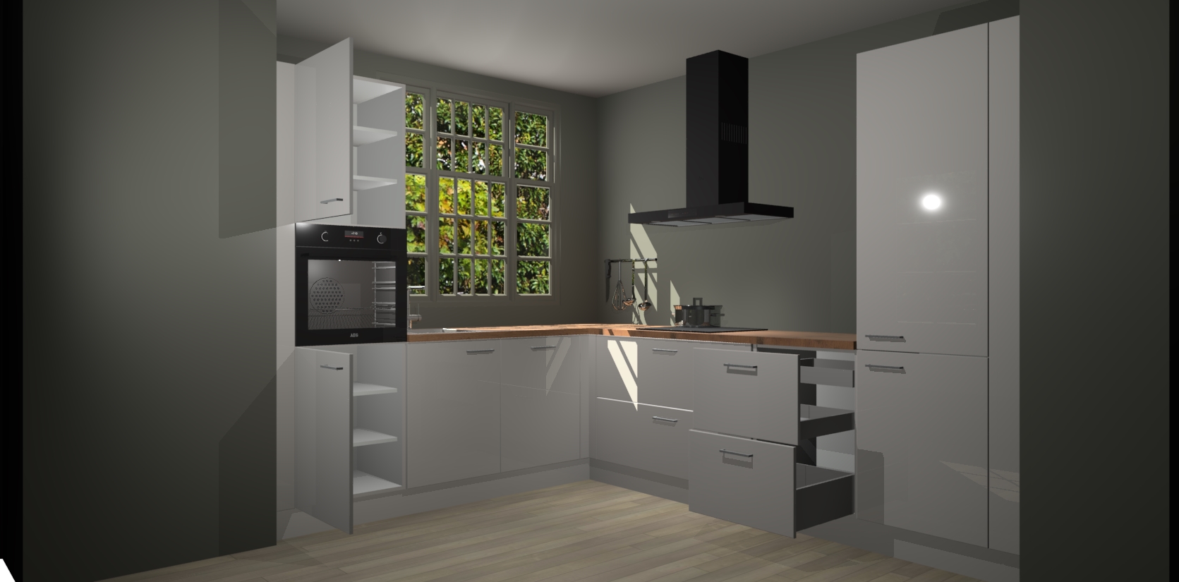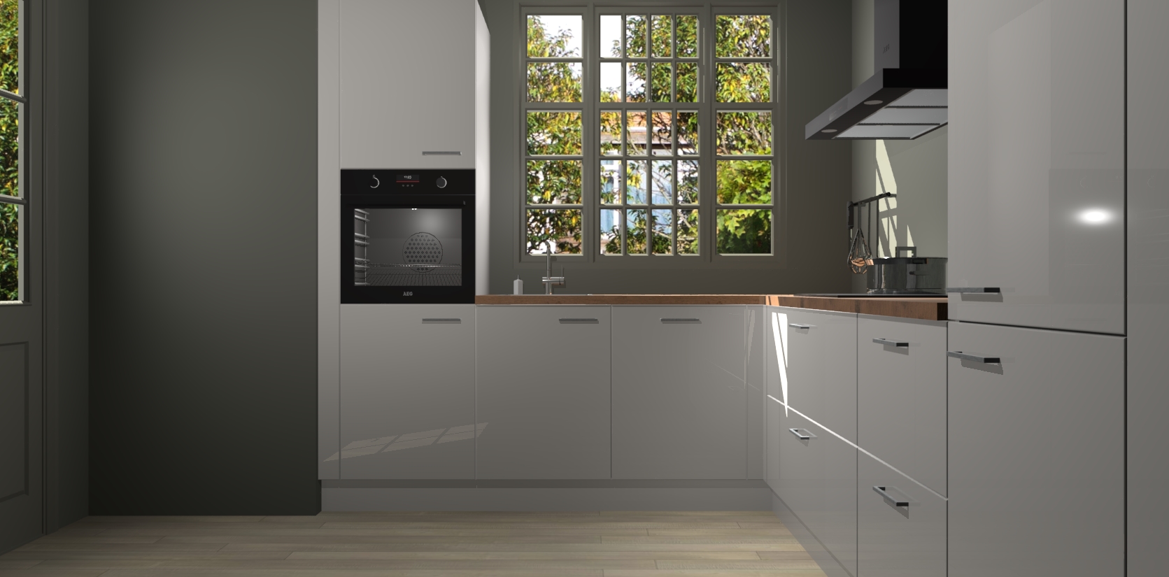 Met een modern, tijdloos design en ruime opslagruimte, zult u zich in no-time thuis voelen in uw nieuwe keuken. Uw leven wordt eenvoudiger met de soft-close deuren die voor het ultieme stille comfort zorgen - geen geluid dat u stoort terwijl u kookt. Ook is de keuken voorzien van 5 ingebouwde apparaten: een oven, inductie kookplaat, afzuigkap, vaatwasser en koelkast. Deze kunnen gemakkelijk na bestelling worden bijgewerkt naar AEG - waardoor uw luxe ervaring compleet is.