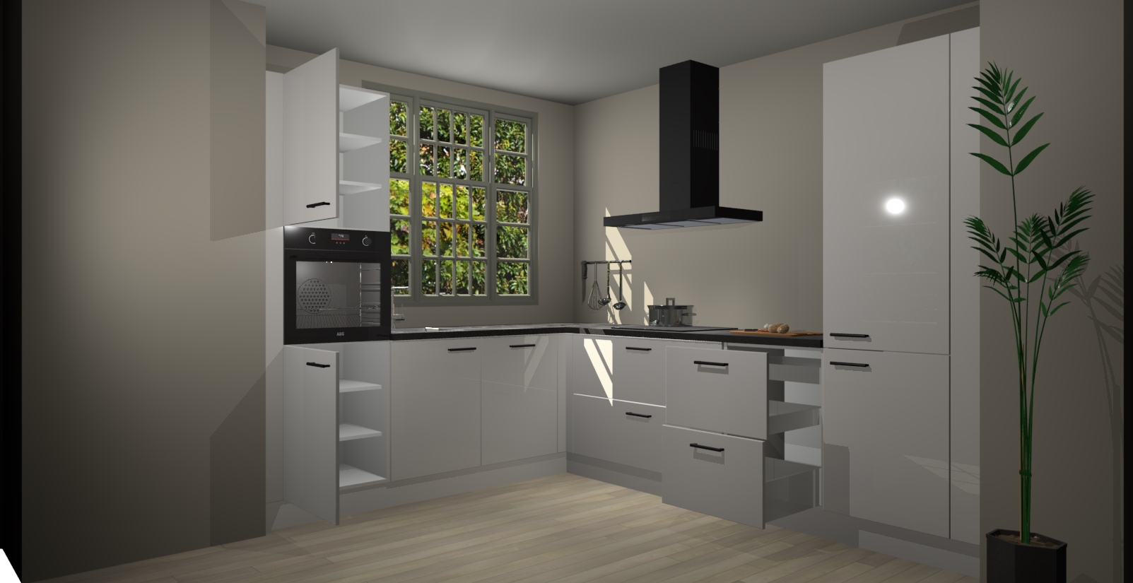 Met een modern, tijdloos design en ruime opslagruimte, zult u zich in no-time thuis voelen in uw nieuwe keuken. Uw leven wordt eenvoudiger met de soft-close deuren die voor het ultieme stille comfort zorgen - geen geluid dat u stoort terwijl u kookt. Ook is de keuken voorzien van 5 ingebouwde apparaten: een oven, inductie kookplaat, afzuigkap, vaatwasser en koelkast. Deze kunnen gemakkelijk na bestelling worden bijgewerkt naar AEG - waardoor uw luxe ervaring compleet is.