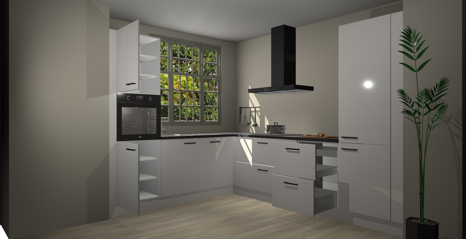 Met een modern, tijdloos design en ruime opslagruimte, zult u zich in no-time thuis voelen in uw nieuwe keuken. Uw leven wordt eenvoudiger met de soft-close deuren die voor het ultieme stille comfort zorgen - geen geluid dat u stoort terwijl u kookt. Ook is de keuken voorzien van 5 ingebouwde apparaten: een oven, inductie kookplaat, afzuigkap, vaatwasser en koelkast. Deze kunnen gemakkelijk na bestelling worden bijgewerkt naar AEG - waardoor uw luxe ervaring compleet is.