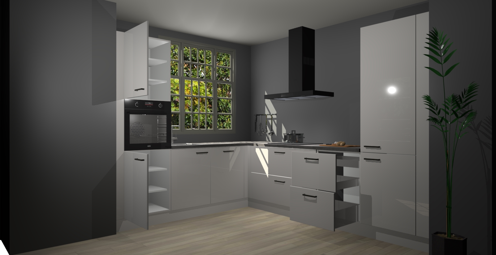 Met een modern, tijdloos design en ruime opslagruimte, zult u zich in no-time thuis voelen in uw nieuwe keuken. Uw leven wordt eenvoudiger met de soft-close deuren die voor het ultieme stille comfort zorgen - geen geluid dat u stoort terwijl u kookt. Ook is de keuken voorzien van 5 ingebouwde apparaten: een oven, inductie kookplaat, afzuigkap, vaatwasser en koelkast. Deze kunnen gemakkelijk na bestelling worden bijgewerkt naar AEG - waardoor uw luxe ervaring compleet is.