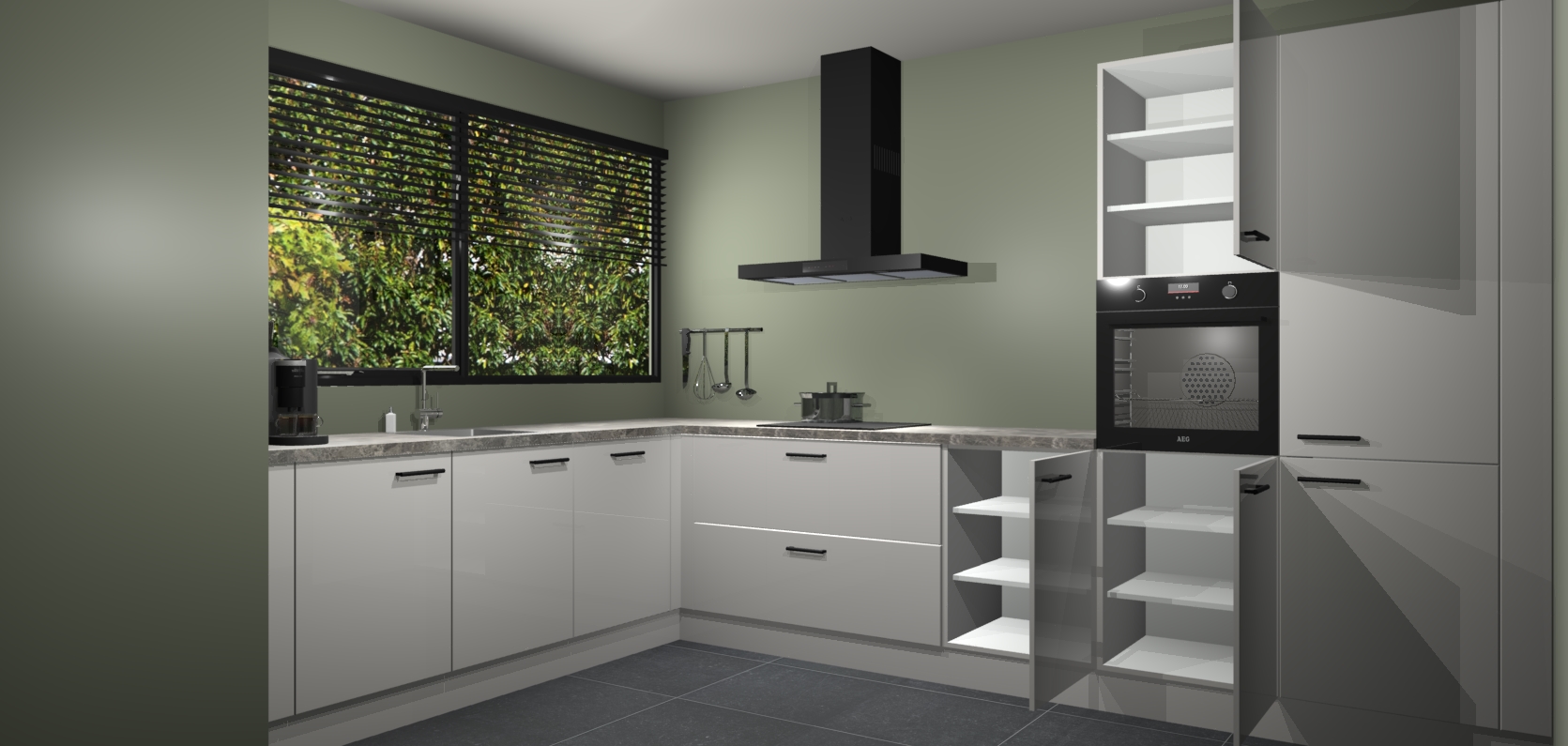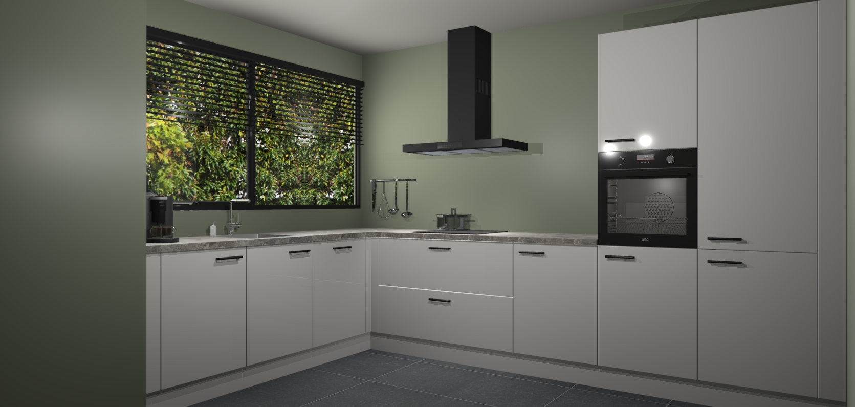 Met een modern, tijdloos design en ruime opslagruimte, zult u zich in no-time thuis voelen in uw nieuwe keuken. Uw leven wordt eenvoudiger met de soft-close deuren die voor het ultieme stille comfort zorgen - geen geluid dat u stoort terwijl u kookt. Ook is de keuken voorzien van 5 ingebouwde apparaten: een oven, inductie kookplaat, afzuigkap, vaatwasser en koelkast. Deze kunnen gemakkelijk na bestelling worden bijgewerkt naar AEG - waardoor uw luxe ervaring compleet is.