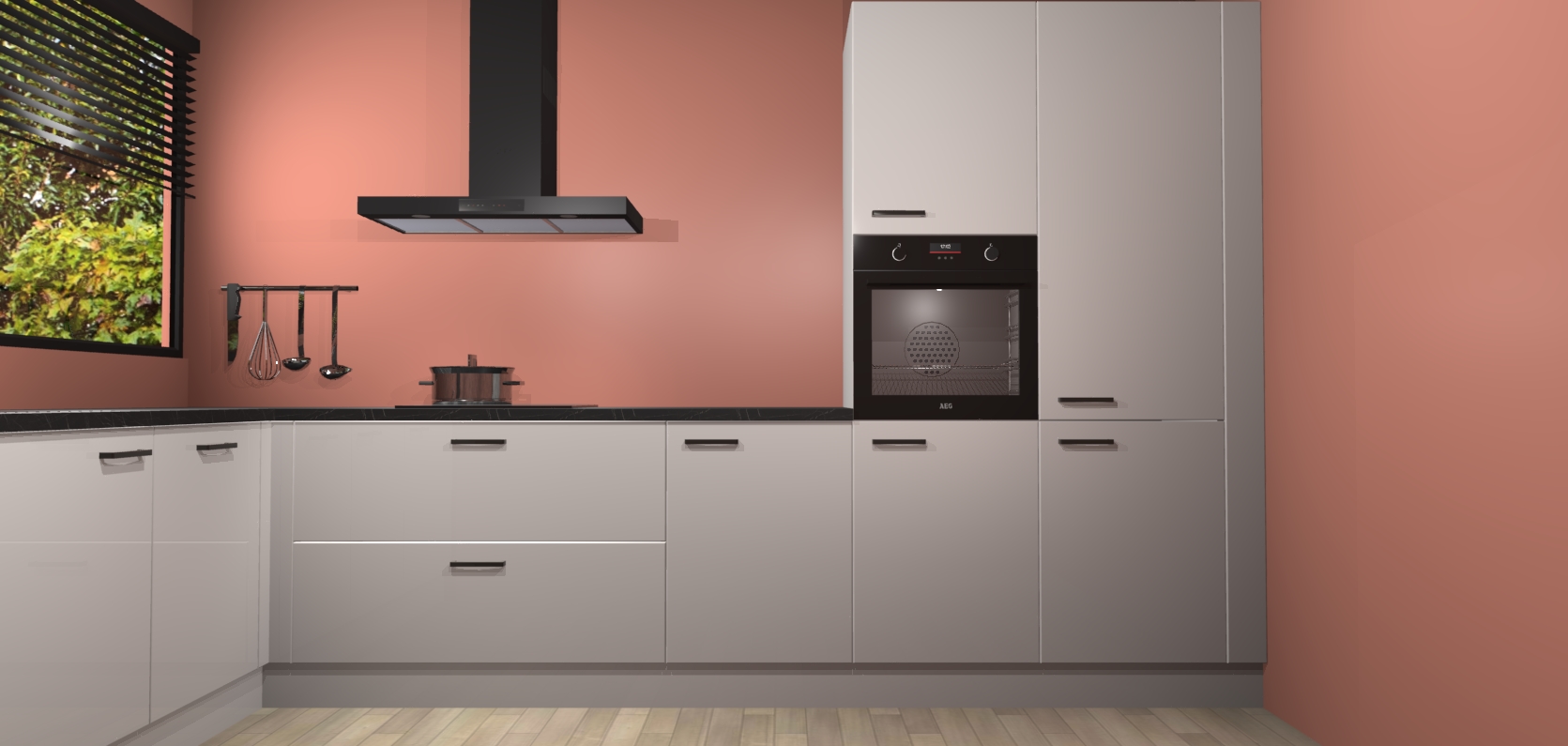 Met een modern, tijdloos design en ruime opslagruimte, zult u zich in no-time thuis voelen in uw nieuwe keuken. Uw leven wordt eenvoudiger met de soft-close deuren die voor het ultieme stille comfort zorgen - geen geluid dat u stoort terwijl u kookt. Ook is de keuken voorzien van 5 ingebouwde apparaten: een oven, inductie kookplaat, afzuigkap, vaatwasser en koelkast. Deze kunnen gemakkelijk na bestelling worden bijgewerkt naar AEG - waardoor uw luxe ervaring compleet is.
