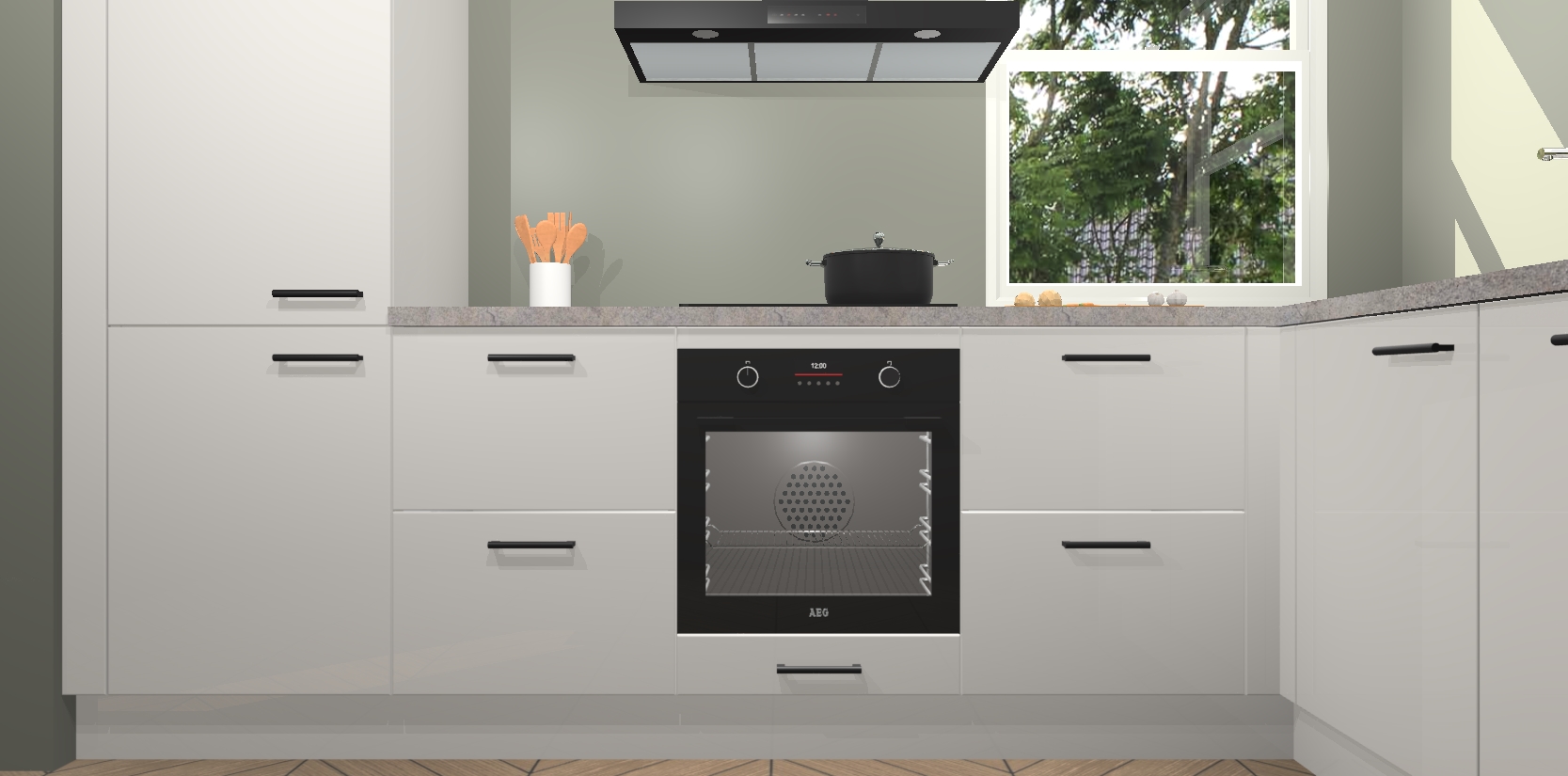 Wat maakt deze keuken zo bijzonder? Ten eerste geeft het houten werkblad uw ruimte een onmiskenbaar klassieke uitstraling. De natuurlijke afwerking roept warmte en elegantie op die nooit uit de mode zullen raken. Bovendien is het gemakkelijk schoon te houden en te onderhouden, zodat je er jarenlang plezier van kunt hebben. Als u op zoek bent naar extra gemak in uw keuken, dan heeft u bij het plaatsen van een bestelling bij ons ook de optie om uw toestellen te upgraden naar AEG-modellen - zo haalt u moderne innovatie van topmerken in apparatentechnologie rechtstreeks in huis.