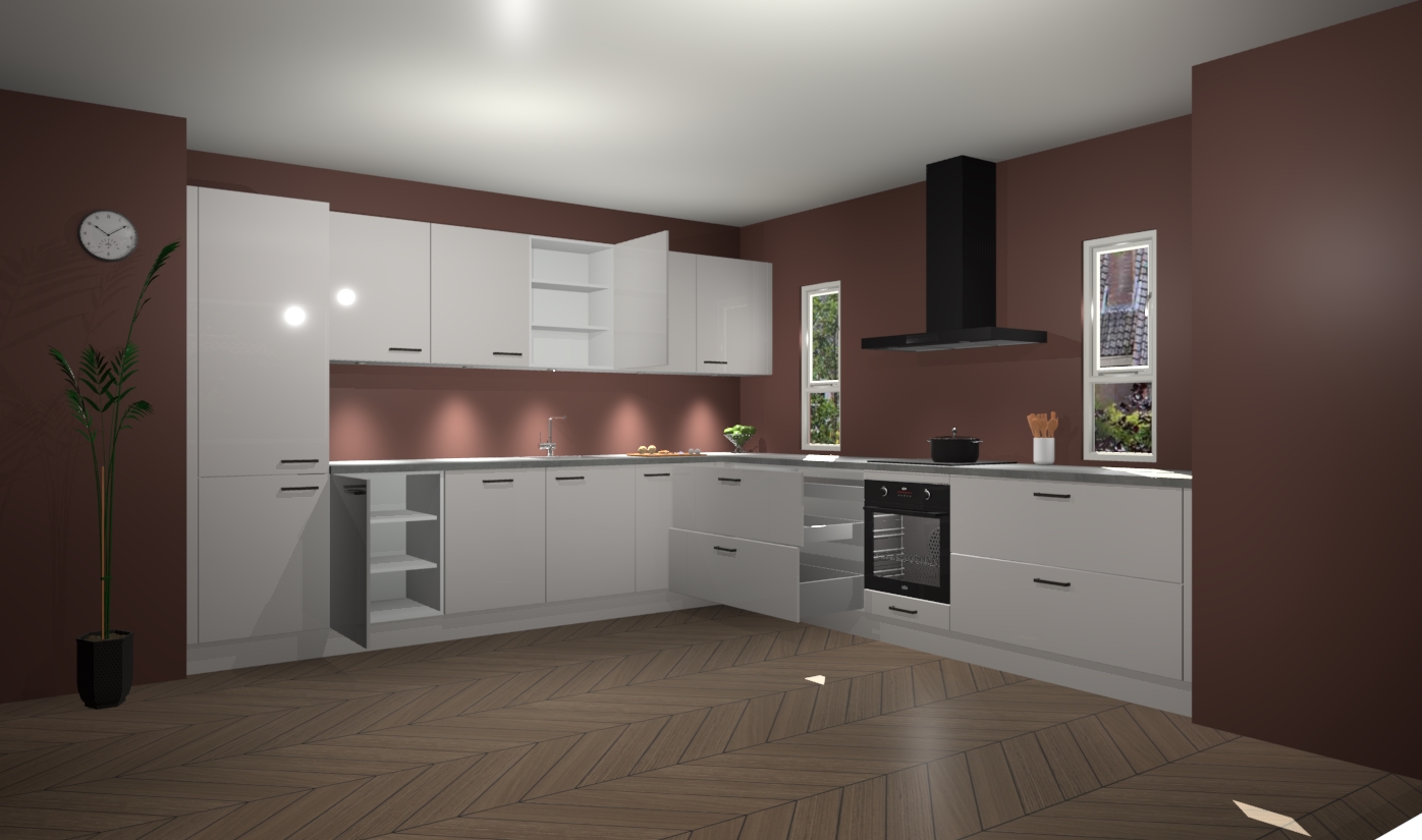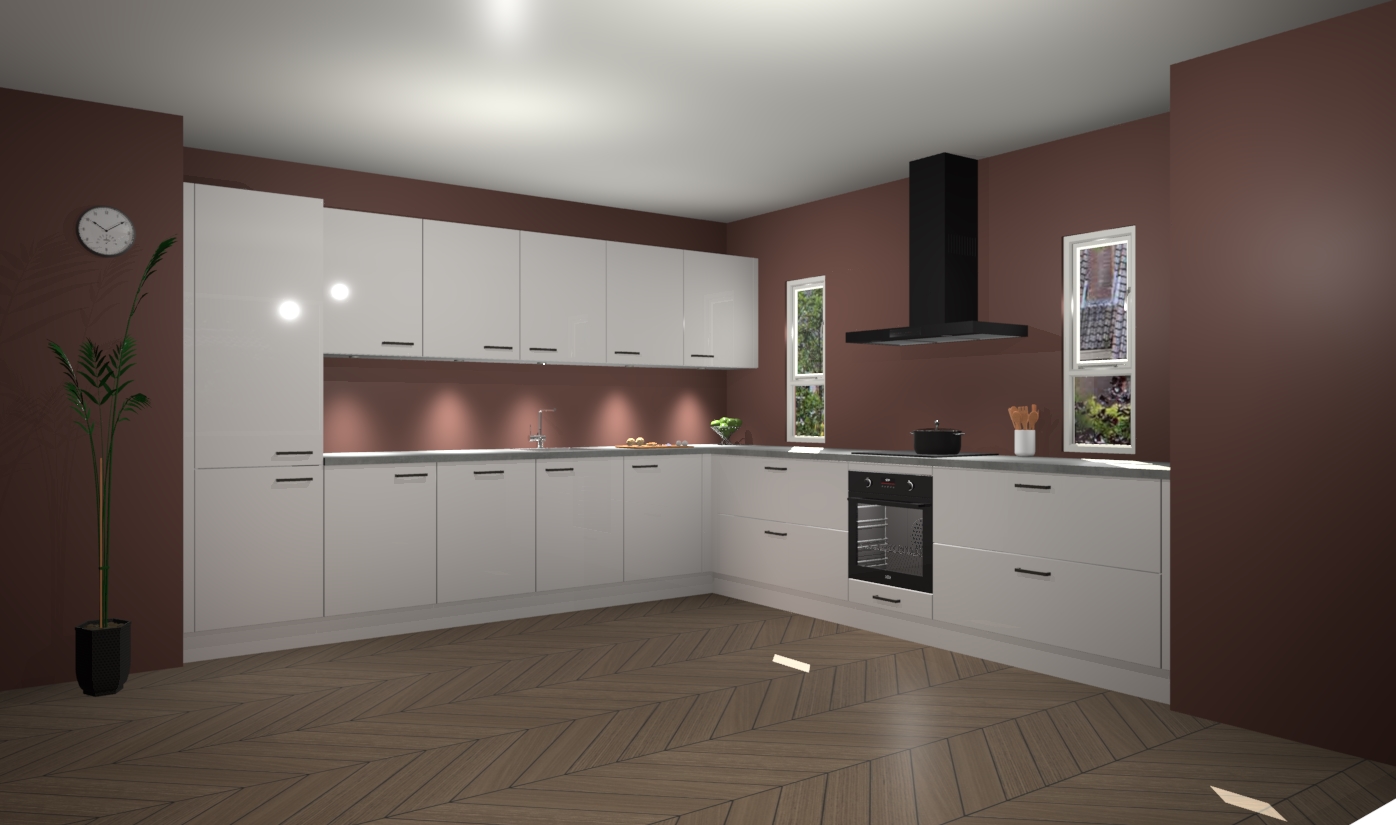 De zijdegrijze hoogglans keuken is een ideale hoekkeuken en heeft alle functies en apparatuur die u maar nodig kunt hebben. Bij de bestelling krijgt u een oven, inductiekookplaat, afzuigkap, vaatwasser en koelkast - deze kunnen desgewenst eenvoudig worden uitgebreid naar AEG na bestellen. Elke kast wordt ook voor gemonteerd geleverd met soft close deuren die jarenlang gebruik beloven. Stelt u zich voor dat u geen gedoe heeft met vervelende montage - vanaf het moment dat u uw bestelling plaats, duurt het slechts 7 weken voor het bij u thuis geleverd wordt.
