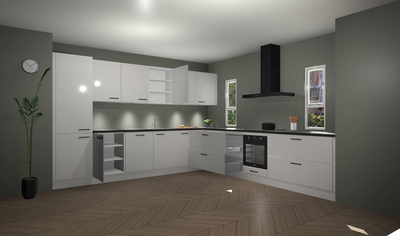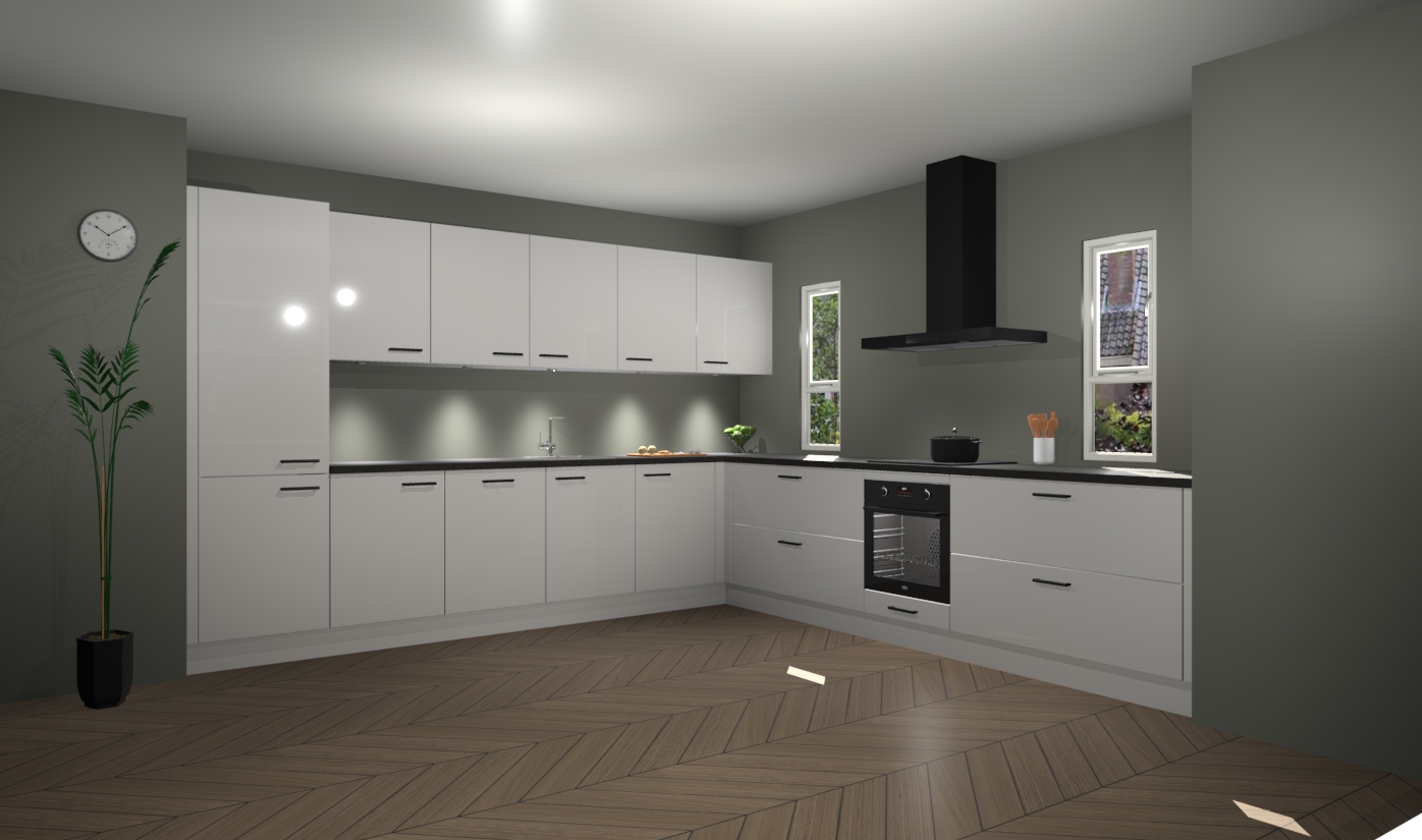 De zijdegrijze hoogglans keuken is een ideale hoekkeuken en heeft alle functies en apparatuur die u maar nodig kunt hebben. Bij de bestelling krijgt u een oven, inductiekookplaat, afzuigkap, vaatwasser en koelkast - deze kunnen desgewenst eenvoudig worden uitgebreid naar AEG na bestellen. Elke kast wordt ook voor gemonteerd geleverd met soft close deuren die jarenlang gebruik beloven. Stelt u zich voor dat u geen gedoe heeft met vervelende montage - vanaf het moment dat u uw bestelling plaats, duurt het slechts 7 weken voor het bij u thuis geleverd wordt.