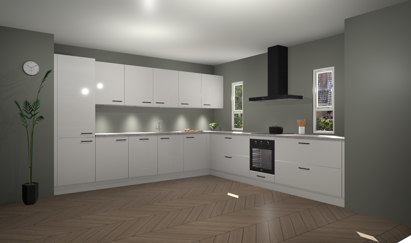 De zijdegrijze hoogglans keuken is een ideale hoekkeuken en heeft alle functies en apparatuur die u maar nodig kunt hebben. Bij de bestelling krijgt u een oven, inductiekookplaat, afzuigkap, vaatwasser en koelkast - deze kunnen desgewenst eenvoudig worden uitgebreid naar AEG na bestellen. Elke kast wordt ook voor gemonteerd geleverd met soft close deuren die jarenlang gebruik beloven. Stelt u zich voor dat u geen gedoe heeft met vervelende montage - vanaf het moment dat u uw bestelling plaats, duurt het slechts 7 weken voor het bij u thuis geleverd wordt.