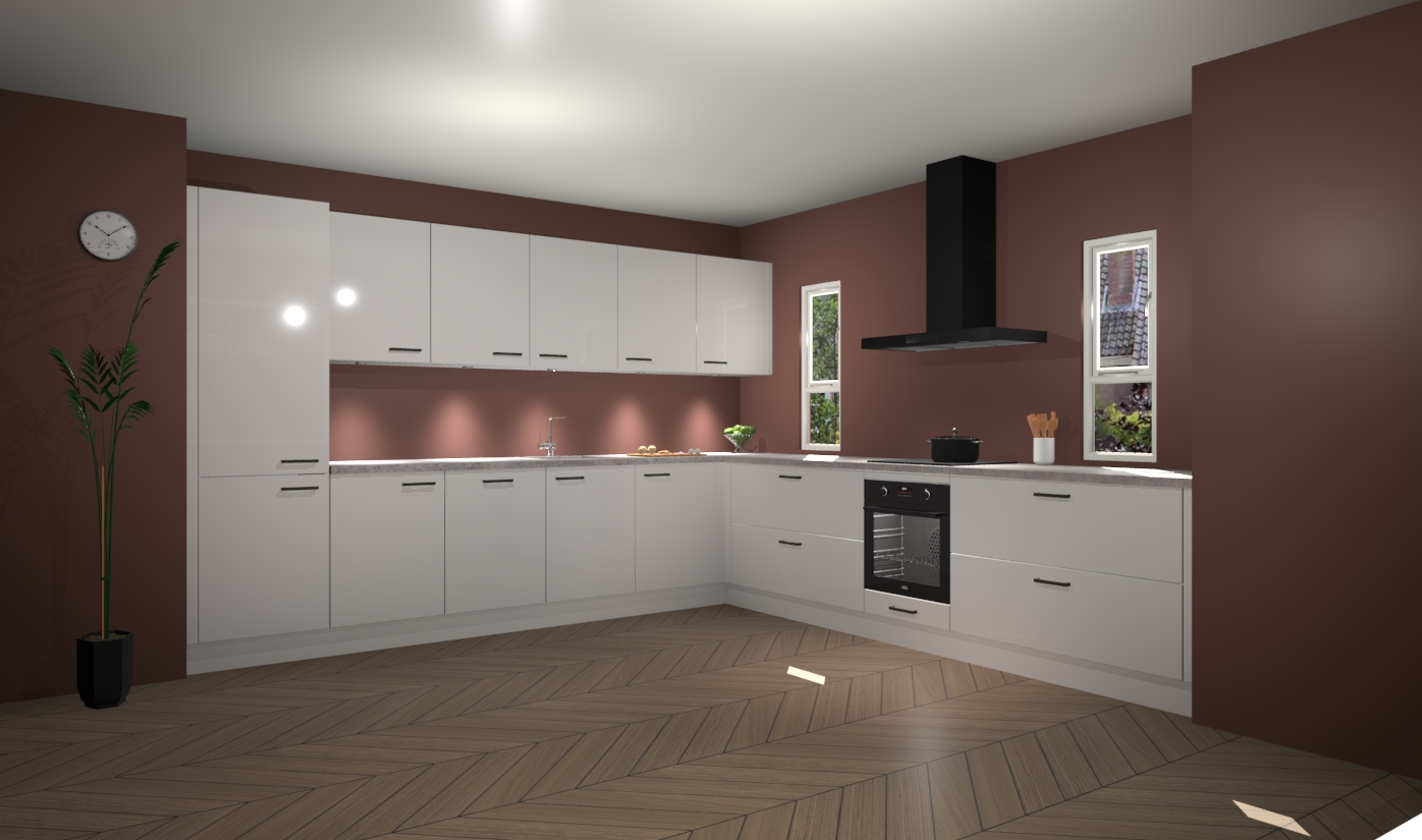De zijdegrijze hoogglans keuken is een ideale hoekkeuken en heeft alle functies en apparatuur die u maar nodig kunt hebben. Bij de bestelling krijgt u een oven, inductiekookplaat, afzuigkap, vaatwasser en koelkast - deze kunnen desgewenst eenvoudig worden uitgebreid naar AEG na bestellen. Elke kast wordt ook voor gemonteerd geleverd met soft close deuren die jarenlang gebruik beloven. Stelt u zich voor dat u geen gedoe heeft met vervelende montage - vanaf het moment dat u uw bestelling plaats, duurt het slechts 7 weken voor het bij u thuis geleverd wordt.