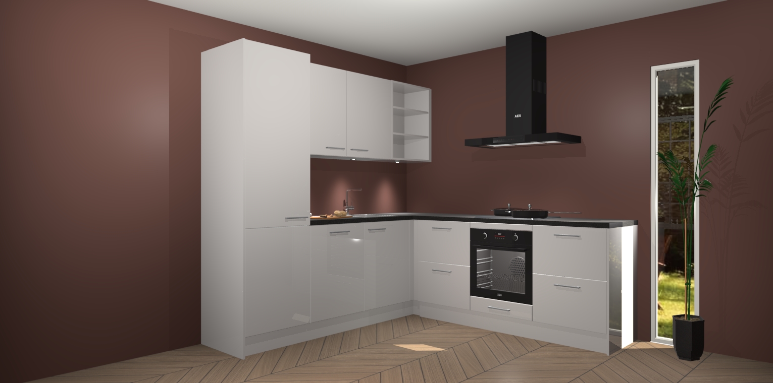 Met zijn moderne design en aantrekkelijke hoekopstelling biedt deze keuken een unieke look die zelfs de meest veeleisende huiseigenaar zal bevallen. En omdat de binnenkant van de kasten dezelfde kleur heeft als de buitenkant, heeft uw keuken een consistente afwerking. Bovenop de geweldige look is opbergruimte ook geen probleem, met voldoende kast- en laderuimte achter zelfs de mooiste buitenkant.