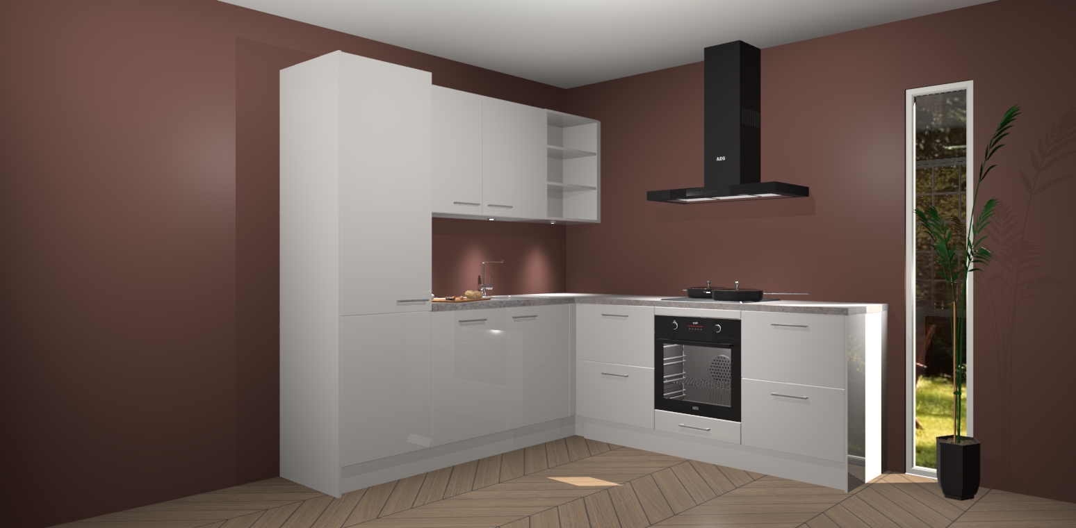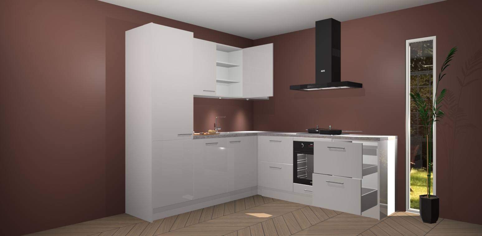 Met zijn moderne design en aantrekkelijke hoekopstelling biedt deze keuken een unieke look die zelfs de meest veeleisende huiseigenaar zal bevallen. En omdat de binnenkant van de kasten dezelfde kleur heeft als de buitenkant, heeft uw keuken een consistente afwerking. Bovenop de geweldige look is opbergruimte ook geen probleem, met voldoende kast- en laderuimte achter zelfs de mooiste buitenkant.