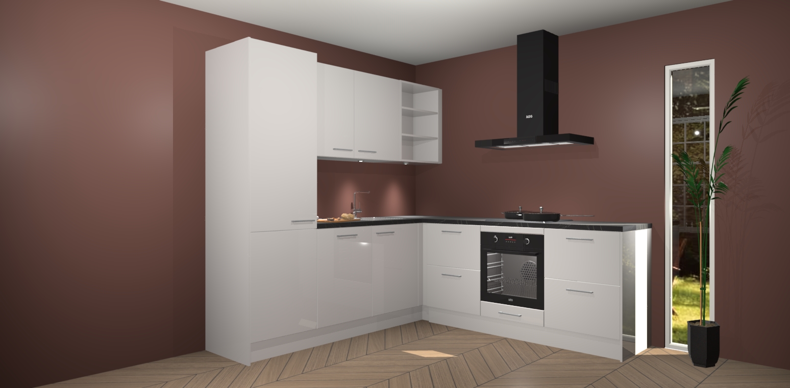 Met zijn moderne design en aantrekkelijke hoekopstelling biedt deze keuken een unieke look die zelfs de meest veeleisende huiseigenaar zal bevallen. En omdat de binnenkant van de kasten dezelfde kleur heeft als de buitenkant, heeft uw keuken een consistente afwerking. Bovenop de geweldige look is opbergruimte ook geen probleem, met voldoende kast- en laderuimte achter zelfs de mooiste buitenkant.