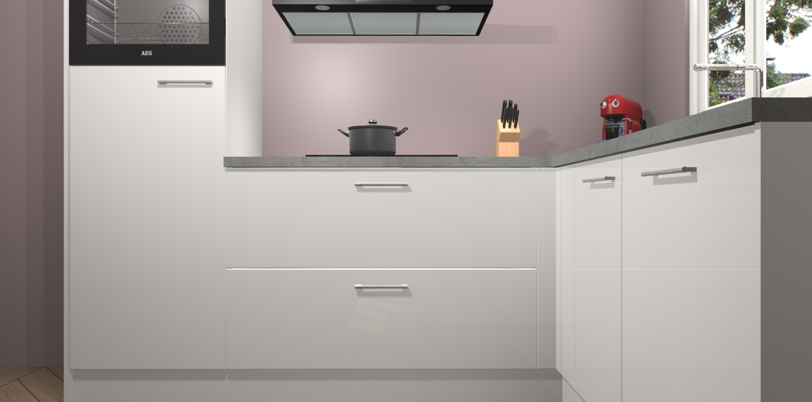 Dit model biedt u voldoende opbergruimte en vijf ingebouwde apparaten: een oven, inductiekookplaat, afzuigkap, vaatwasser en koelkast. Deze apparaten kunnen gemakkelijk worden geüpgrade naar AEG nadat u besteld heeft. De verschillende laden en kastjes bevatten softclose-deuren waardoor ze gezellig dichtvallen met een geruststellend helemaal geruisloos geluid. En dat is nog niet alles! We garanderen ook dat de prijs altijd laag blijft - dus haal nu uw Zijdegrijze hoogglans keuken Victoria terwijl het kan.