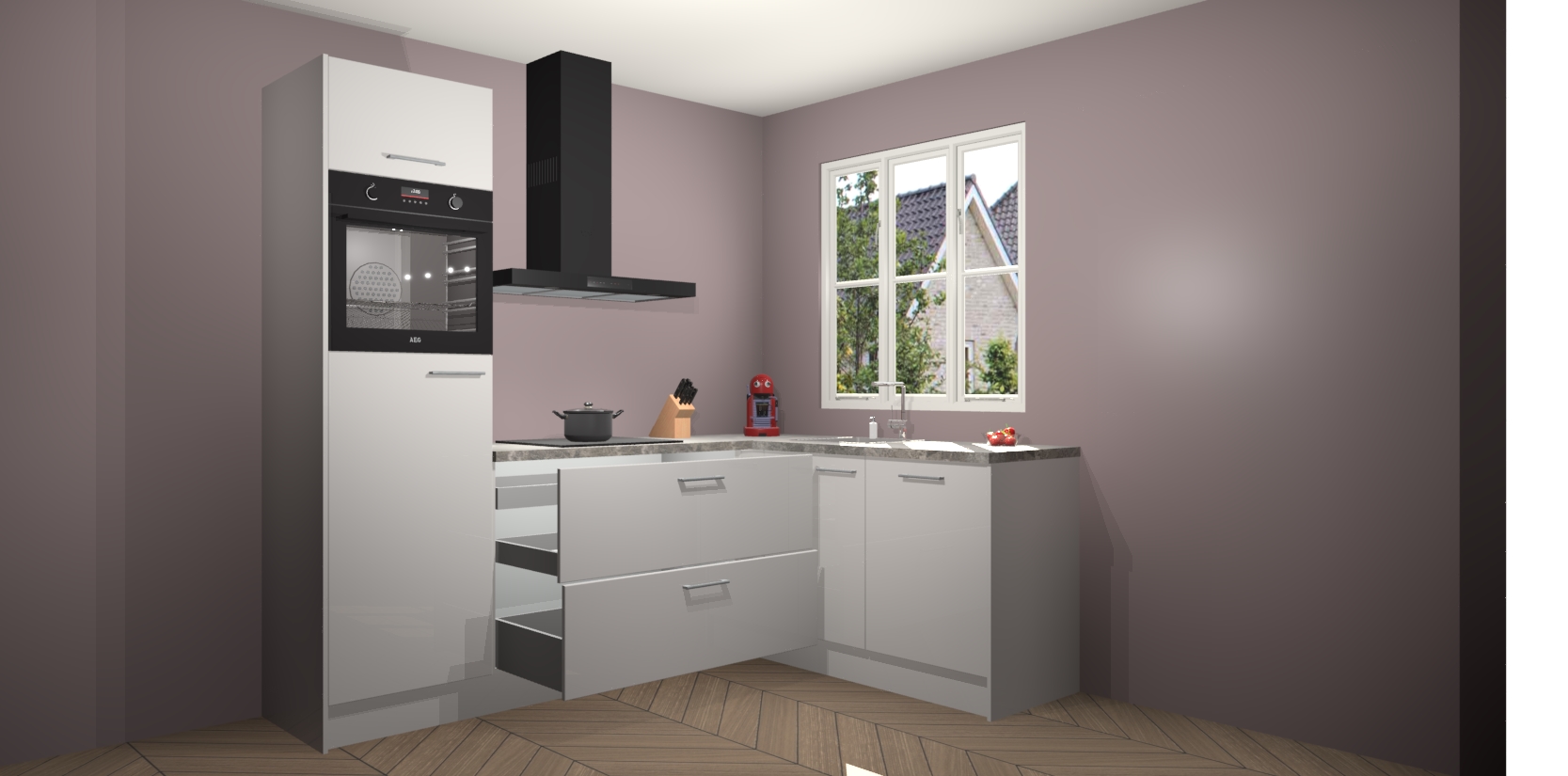 Dit model biedt u voldoende opbergruimte en vijf ingebouwde apparaten: een oven, inductiekookplaat, afzuigkap, vaatwasser en koelkast. Deze apparaten kunnen gemakkelijk worden geüpgrade naar AEG nadat u besteld heeft. De verschillende laden en kastjes bevatten softclose-deuren waardoor ze gezellig dichtvallen met een geruststellend helemaal geruisloos geluid. En dat is nog niet alles! We garanderen ook dat de prijs altijd laag blijft - dus haal nu uw Zijdegrijze hoogglans keuken Victoria terwijl het kan.