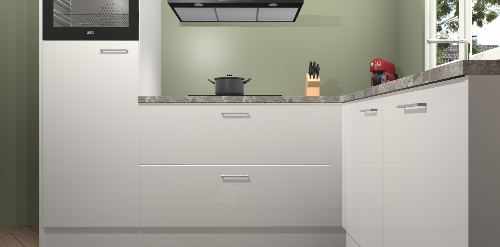 Dit model biedt u voldoende opbergruimte en vijf ingebouwde apparaten: een oven, inductiekookplaat, afzuigkap, vaatwasser en koelkast. Deze apparaten kunnen gemakkelijk worden geüpgrade naar AEG nadat u besteld heeft. De verschillende laden en kastjes bevatten softclose-deuren waardoor ze gezellig dichtvallen met een geruststellend helemaal geruisloos geluid. En dat is nog niet alles! We garanderen ook dat de prijs altijd laag blijft - dus haal nu uw Zijdegrijze hoogglans keuken Victoria terwijl het kan.