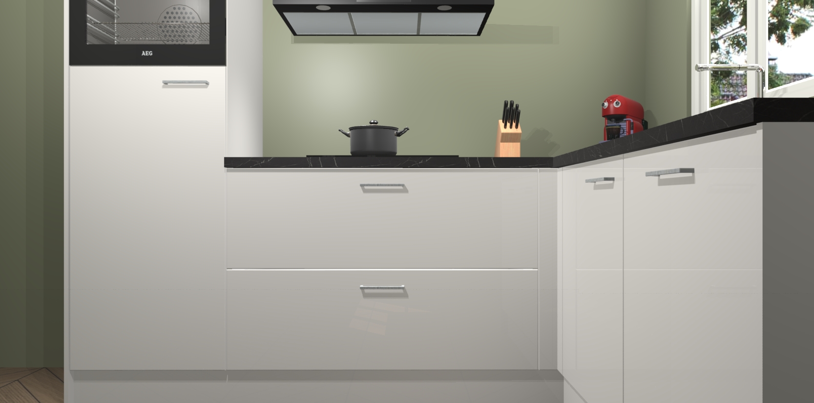 Dit model biedt u voldoende opbergruimte en vijf ingebouwde apparaten: een oven, inductiekookplaat, afzuigkap, vaatwasser en koelkast. Deze apparaten kunnen gemakkelijk worden geüpgrade naar AEG nadat u besteld heeft. De verschillende laden en kastjes bevatten softclose-deuren waardoor ze gezellig dichtvallen met een geruststellend helemaal geruisloos geluid. En dat is nog niet alles! We garanderen ook dat de prijs altijd laag blijft - dus haal nu uw Zijdegrijze hoogglans keuken Victoria terwijl het kan.