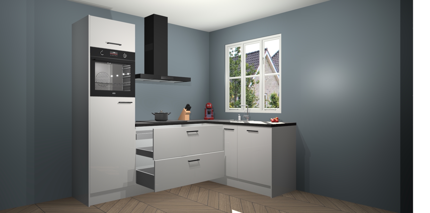 Dit model biedt u voldoende opbergruimte en vijf ingebouwde apparaten: een oven, inductiekookplaat, afzuigkap, vaatwasser en koelkast. Deze apparaten kunnen gemakkelijk worden geüpgrade naar AEG nadat u besteld heeft. De verschillende laden en kastjes bevatten softclose-deuren waardoor ze gezellig dichtvallen met een geruststellend helemaal geruisloos geluid. En dat is nog niet alles! We garanderen ook dat de prijs altijd laag blijft - dus haal nu uw Zijdegrijze hoogglans keuken Victoria terwijl het kan.