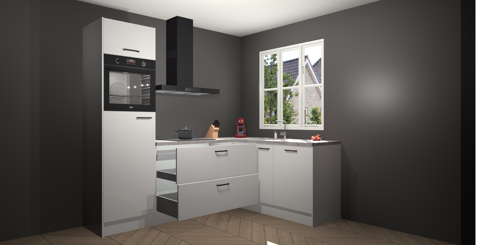 Dit model biedt u voldoende opbergruimte en vijf ingebouwde apparaten: een oven, inductiekookplaat, afzuigkap, vaatwasser en koelkast. Deze apparaten kunnen gemakkelijk worden geüpgrade naar AEG nadat u besteld heeft. De verschillende laden en kastjes bevatten softclose-deuren waardoor ze gezellig dichtvallen met een geruststellend helemaal geruisloos geluid. En dat is nog niet alles! We garanderen ook dat de prijs altijd laag blijft - dus haal nu uw Zijdegrijze hoogglans keuken Victoria terwijl het kan.