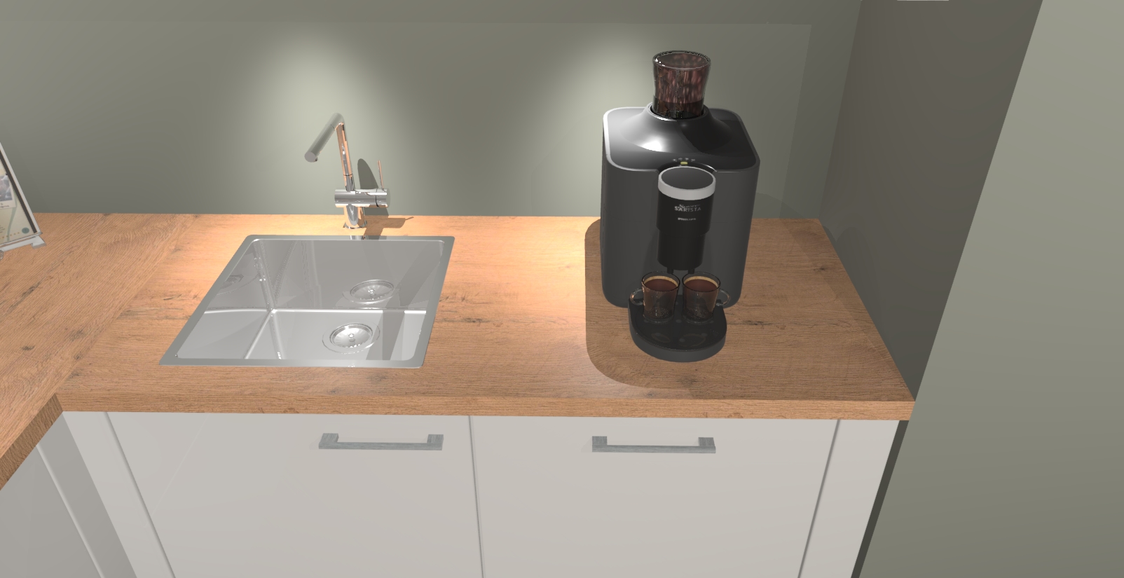 - De spoelbak is nog niet in gevreesd. Dit dient tijdens het werk gedaan te worden