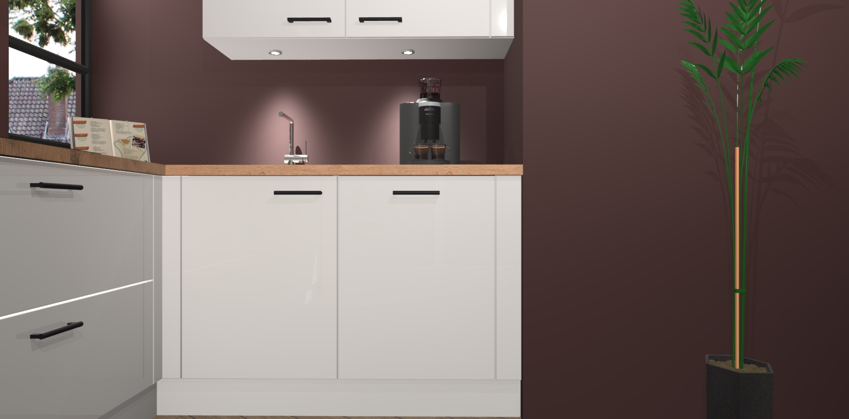 In deze box zijn alle kleuren verzameld van de deuren en werkbladen. Vraag de gratis kleurenbox aan en kijk thuis rustig verder!