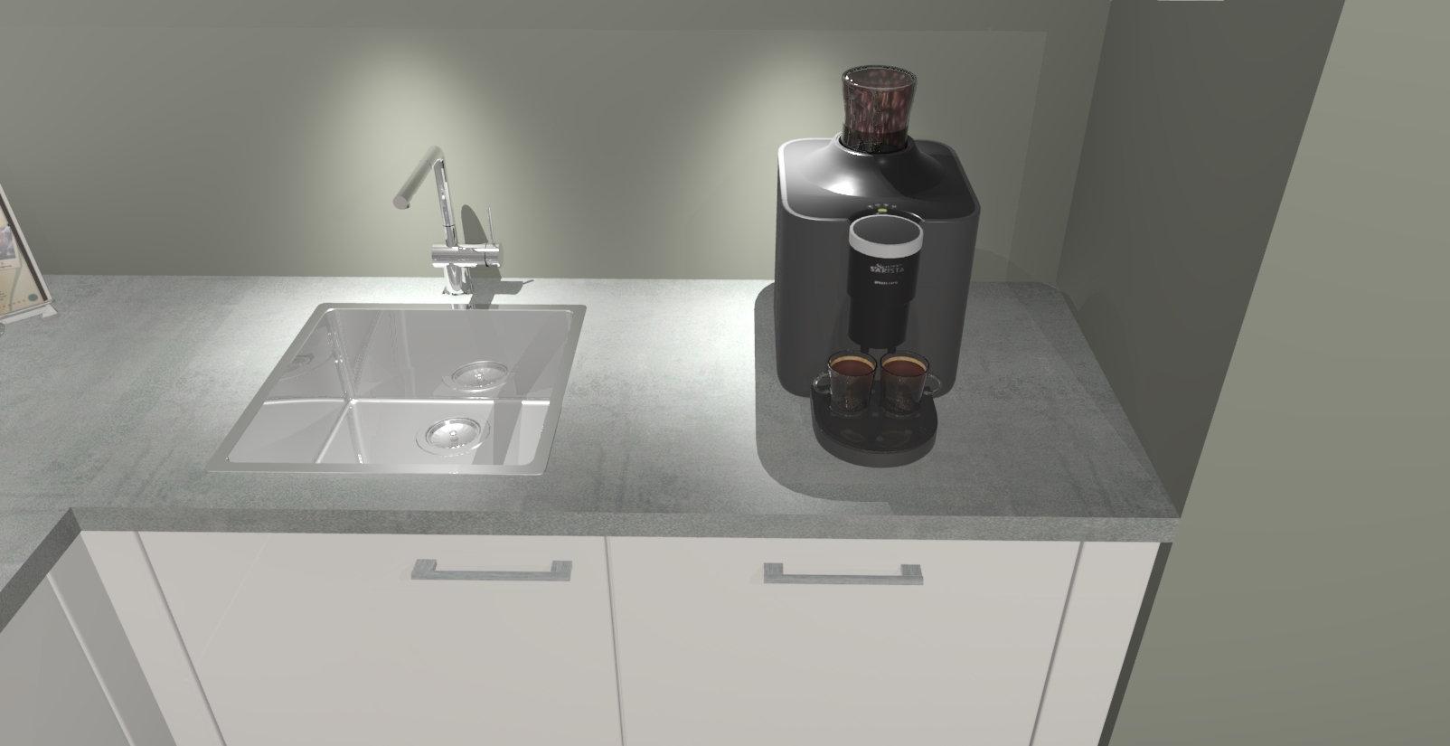 - De spoelbak is nog niet in gevreesd. Dit dient tijdens het werk gedaan te worden